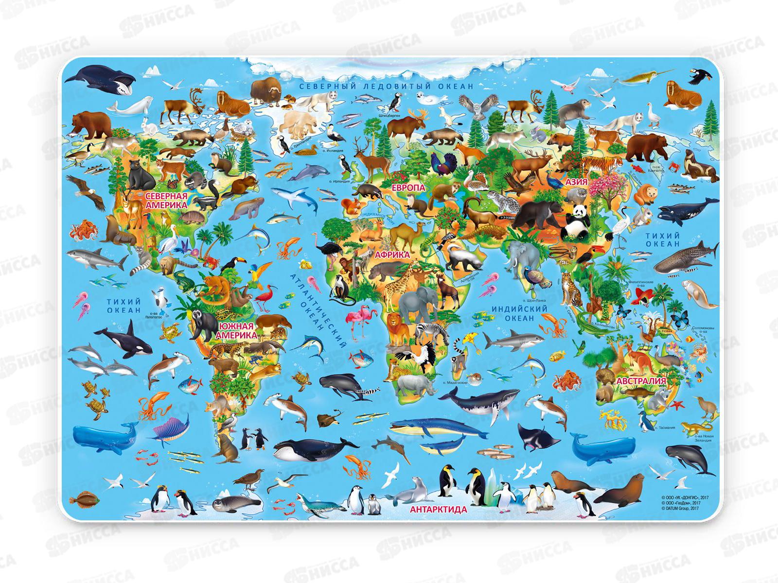 Данная карта-пазл позволяет в процессе интересной игры легко изучить и познать окружающий мир растений и животных! Ваш ребенок в процессе игры с большим интересом изучит флору и фауну на различных материках и островах, а так же обитателей океанов и морей. На карте отражены самые выдающиеся природные объекты (знаменитые водопады, горы, вулканы и т.д.). Играя, ребенок развивает воображение, пространственное мышление, внимание и память! Познавайте окружающий мир вместе с ребенком, собирая данную карту-пазл!