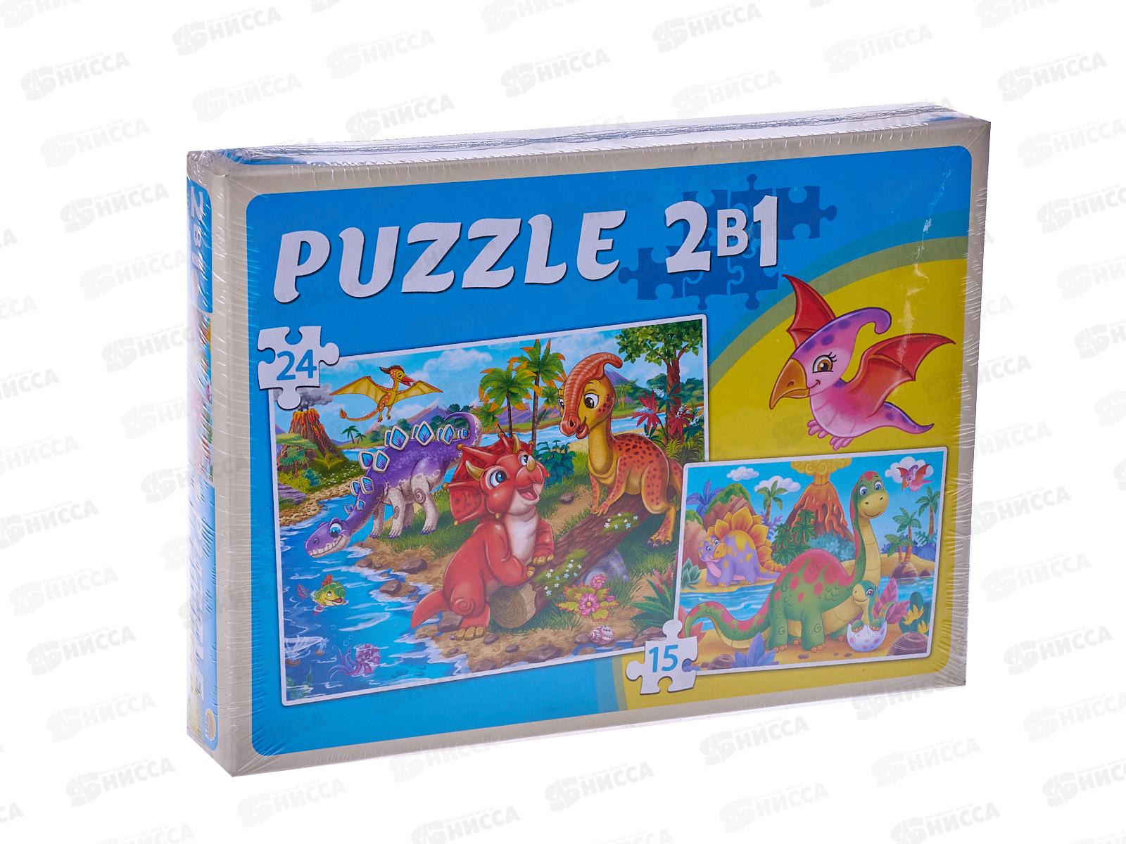 Пазлы-макси. 2 в 1. Мир динозавров №50 (15 и 24 элемента) ПМ15-24-8102