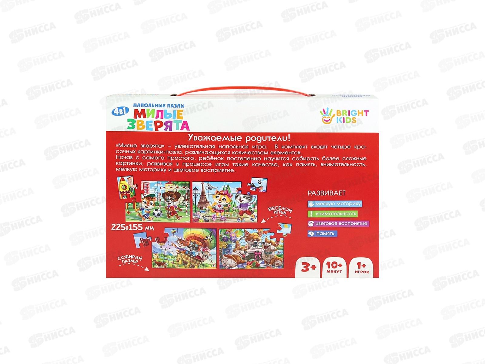 Пазл напольный 4в1. Милые зверята, П-0493, Bright Kids
