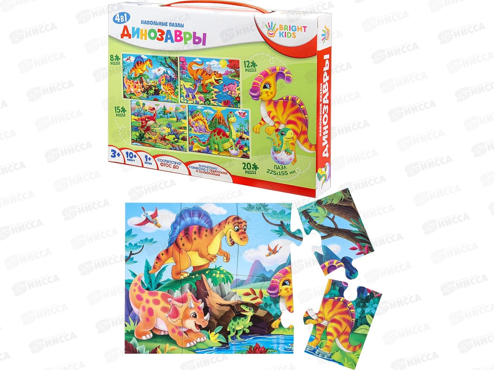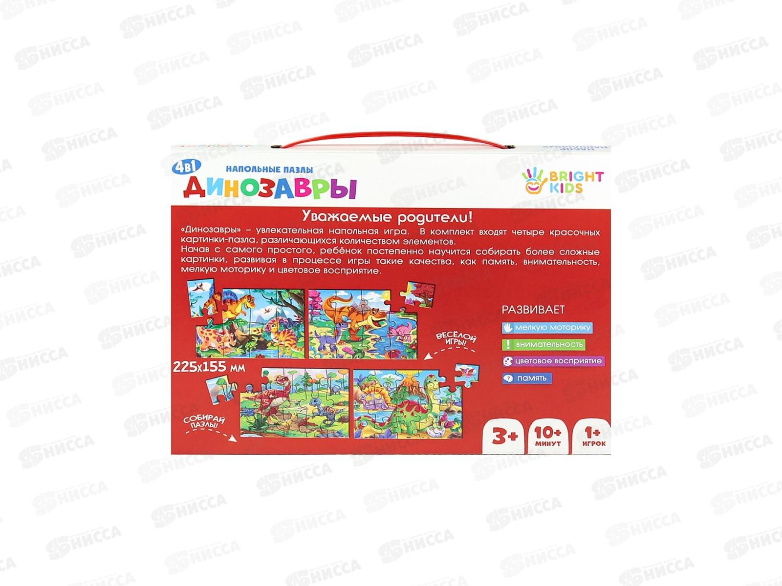 Пазл напольный 4в1. Динозавры, П-0492, Bright Kids
