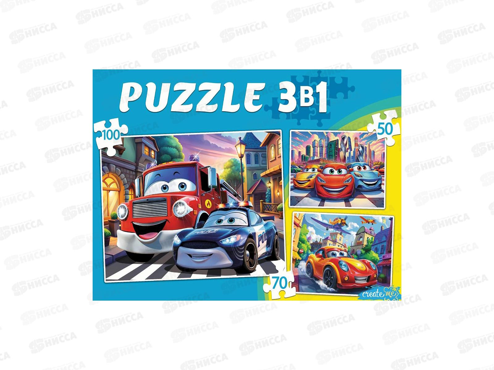Пазлы 3 в 1. Крутые машинки №8 (50,70,100 эл), П-8445 *12