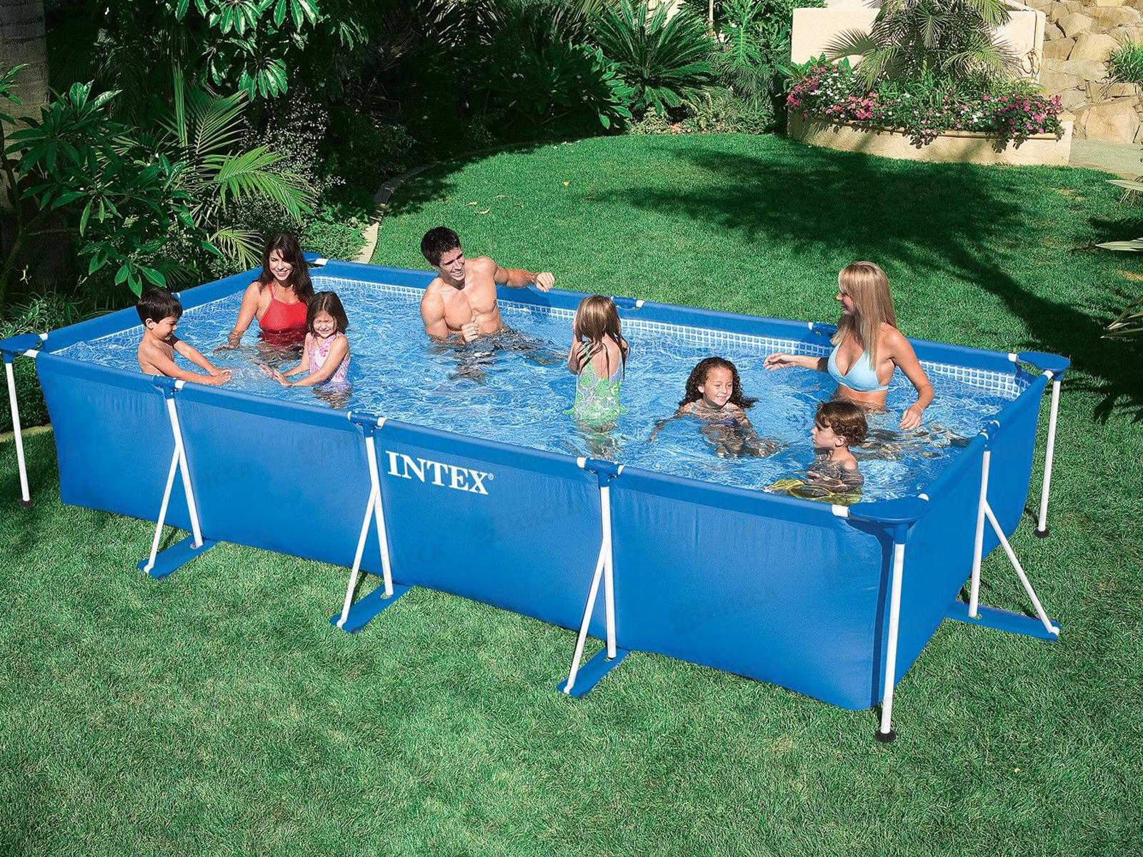 Сборный бассейн Intex Frame Pool легко и быстро устанавливается. Процесс сборки бассейна до наполнения водой занимает 30 минут. Технология Super-Tough придает стенкам бассейна тройную устойчивость. Стенки сделаны из трех слоев: два слоя плотного ПВХа и один — полиэстера для особой прочности. Стальной каркас выдерживает большие нагрузки, в нем одновременно могут купаться несколько человек. Сливной клапан присоединяется к садовому шлангу. Воду из бассейна можно слить в любое удобное место. Не нуждается в подготовке грунта. Есть отверстия для подключения фильтрующего насоса.