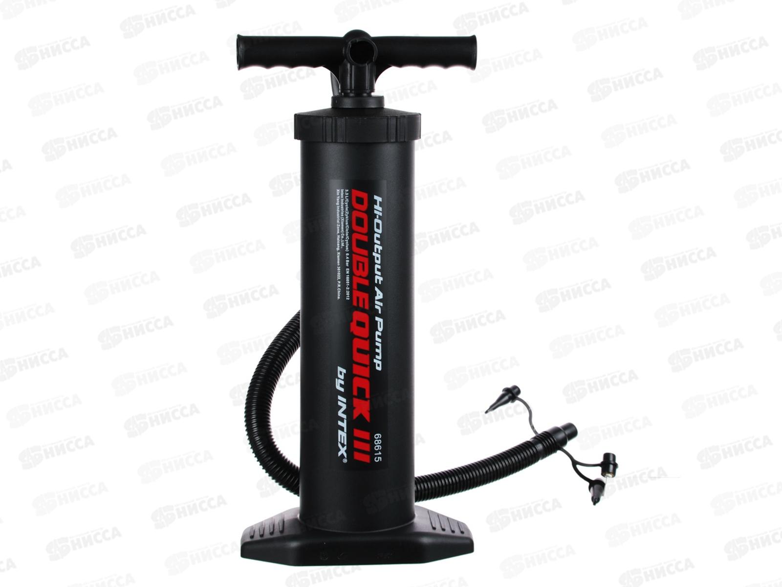 Насос ручной DOUBLE QUICK представляет собой ручной насос быстрого накачивания. Он имеет систему двойного действия, то есть он накачивает изделие как при поступательном, так и при возвратном движении поршня. В комплекте с насосом идет гибкий шланг и 3 насадки для всех видов надувных изделий. Насос подходит ко всем надувным изделиям INTEX.