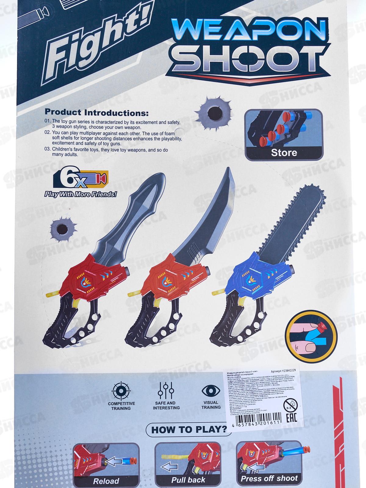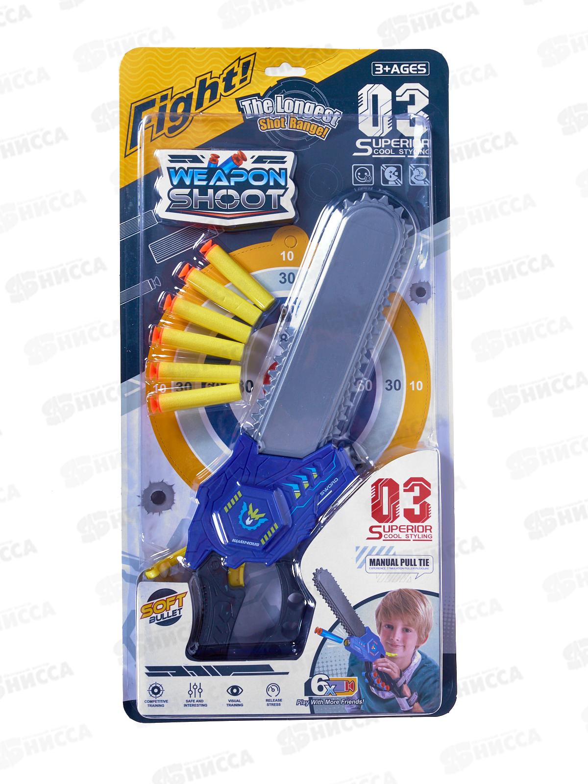 Бензопила Y23642229, стреляющая мягкими патронами 6шт, на блистере