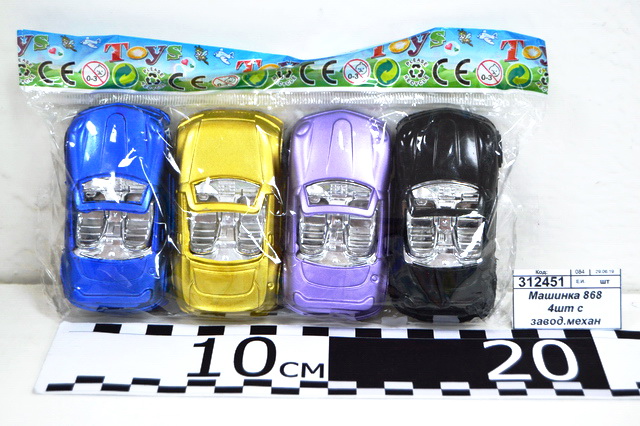 Машинка 868 4шт с заводным механизмом пластик (044307) Ж