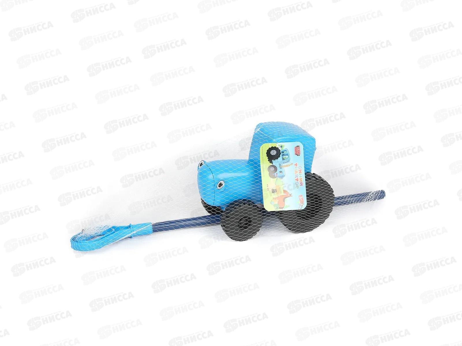 Каталка с ручкой Синий трактор 20см, машина "ТЕХНОПАРК" пластик 395154