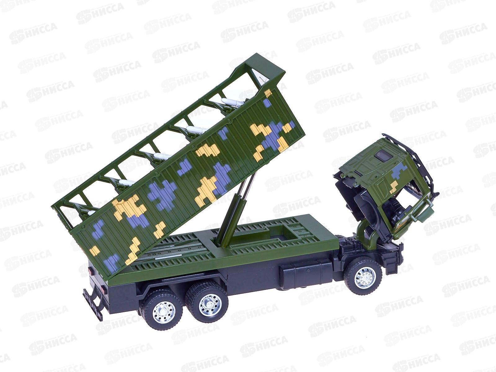 Подвижные элементы: двери открываются, кабина откидывается, 5 беспилотников в комплекте. Световые эффекты (фары светятся). Звуковые эффекты (звуки мотора и спецтехники)