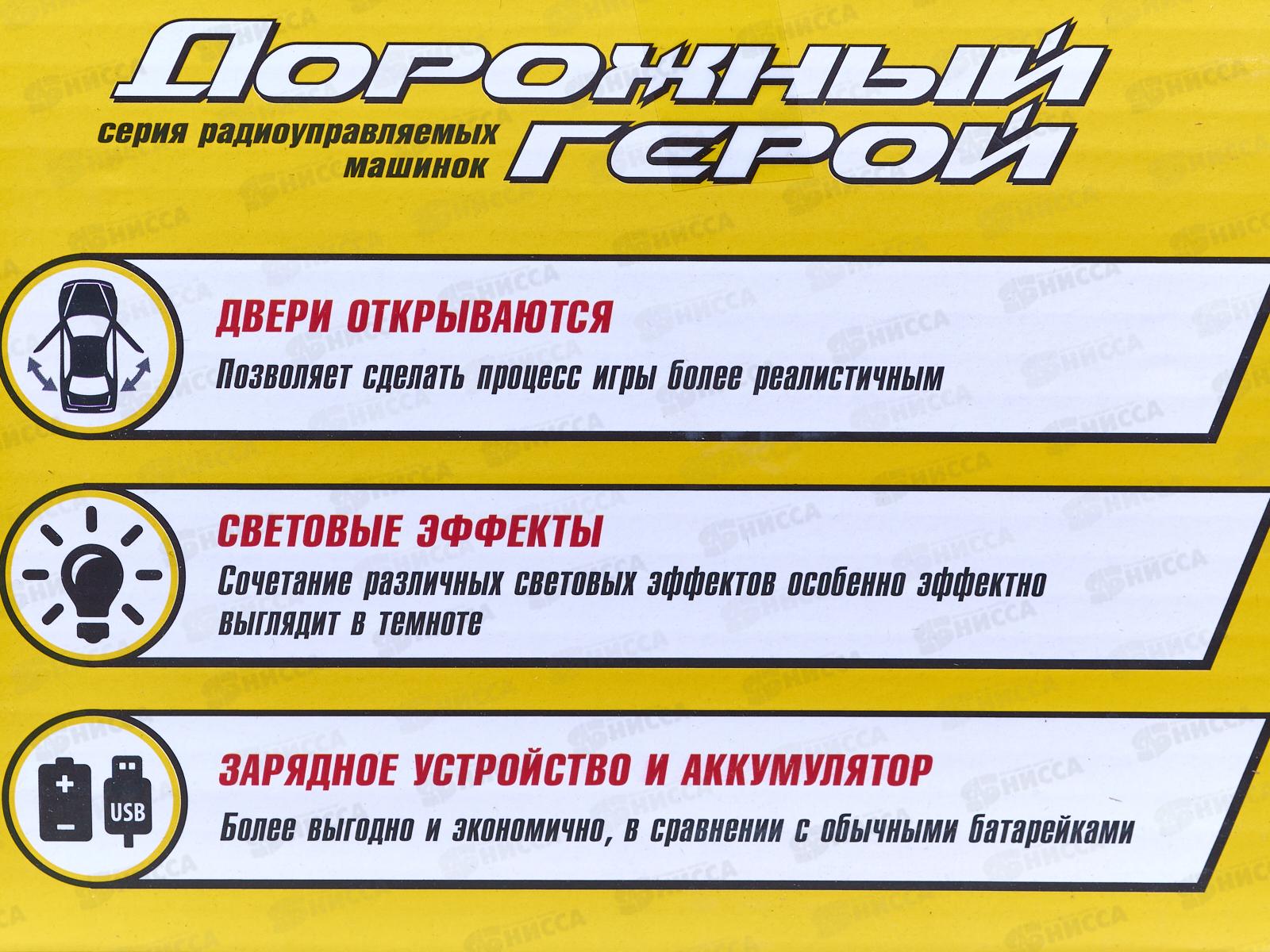 Особенности: световые эффекты, двери и крыша открываются с помощью кнопки на пульте, машинка работает от аккумулятора 3,7 V с USB зарядкой (в комплекте), обеспечивая долгую непрерывную игру и простую зарядку, что более выгодно и экономично в сравнении с обычными батарейками.