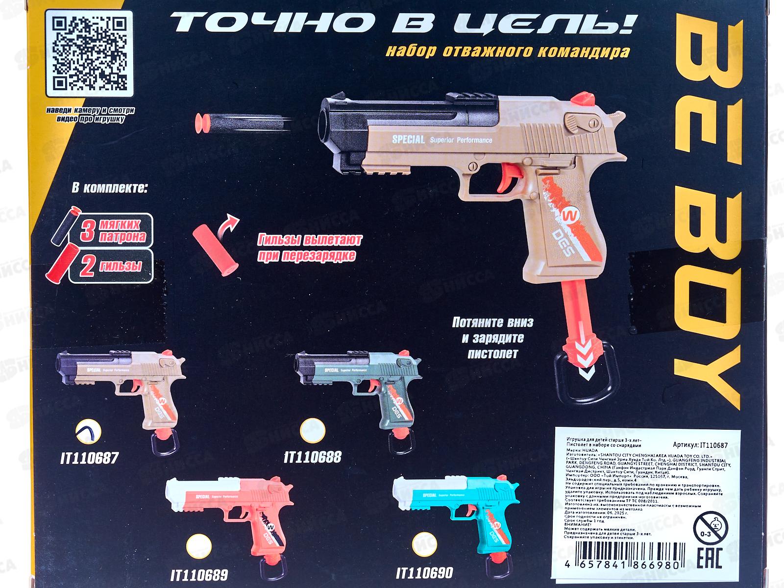 Пистолет "BeBoy" гильзы вылетают, 3 софт-патрона, IT110687 в коробке