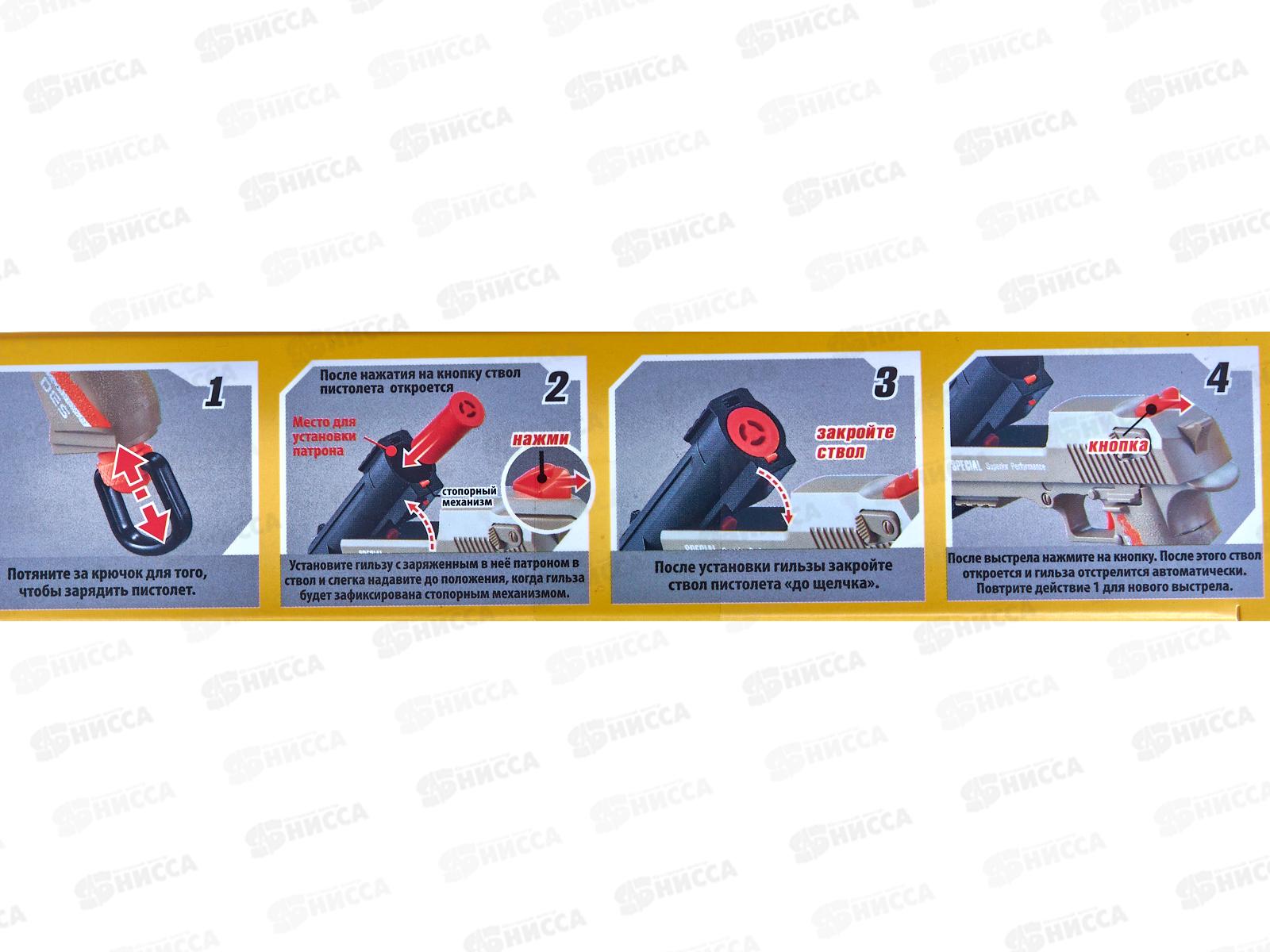 Комплектация: пистолет, 3 софт-патрона, 2 гильзы