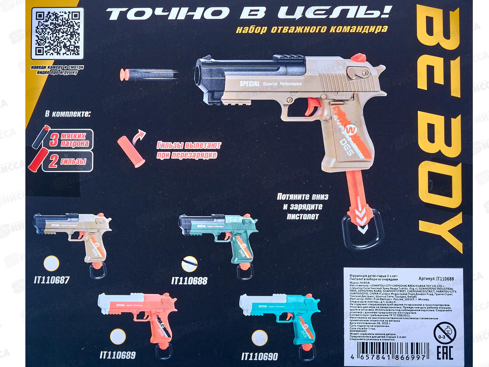 Пистолет "BeBoy" гильзы вылетают, 3 софт-патрона, IT110688 в коробке