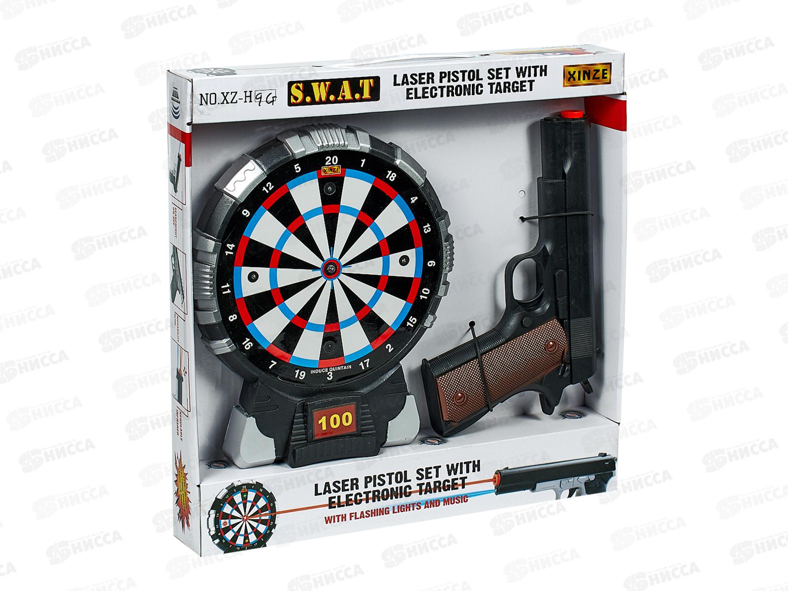 Игровой набор лазерный тир со светочувствительной мишенью. Лазертаг-это новое поколение бесконтактного игушечного оружия. Вместо пулек и дротиков-световые пучки инфракрасного излучения! Бесконтактная и безопасная имитация реального боя происходит при помощи точных ИК-датчиков приема-передачи, что делает лазерный бой максимально реалистичным. Если лазерный луч попал в яблочко, тир начнёт светиться и заигает мелодия. Дальность лазерного оружия-15метров. Лазерный тир-бой работает от 6*АА (не в комплекте).