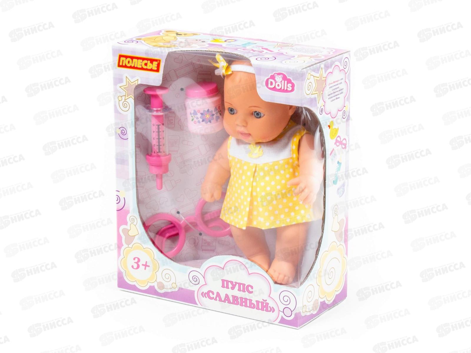 Пупс "Славный" обязательно станет постоянным участником сюжетно-ролевых игр малыша. Игрушка выполнена из качественных материалов, глазки у куклы не закрываются. Пупс одет в стильное платьице, как у настоящей малышки. В комплекте с куклой идёт набор "Доктор", который состоит из 3 элементов. Такая комплектация разнообразит игру и сделает её ещё интереснее и реалистичнее. Ребёнок сможет лечить пупса, придумывая различные сценарии для игры. Кроме того, на обратной стороне коробки есть свидетельство о рождении пупса, вырезав которое ребёнок получит ещё один интересный элемент для игры.