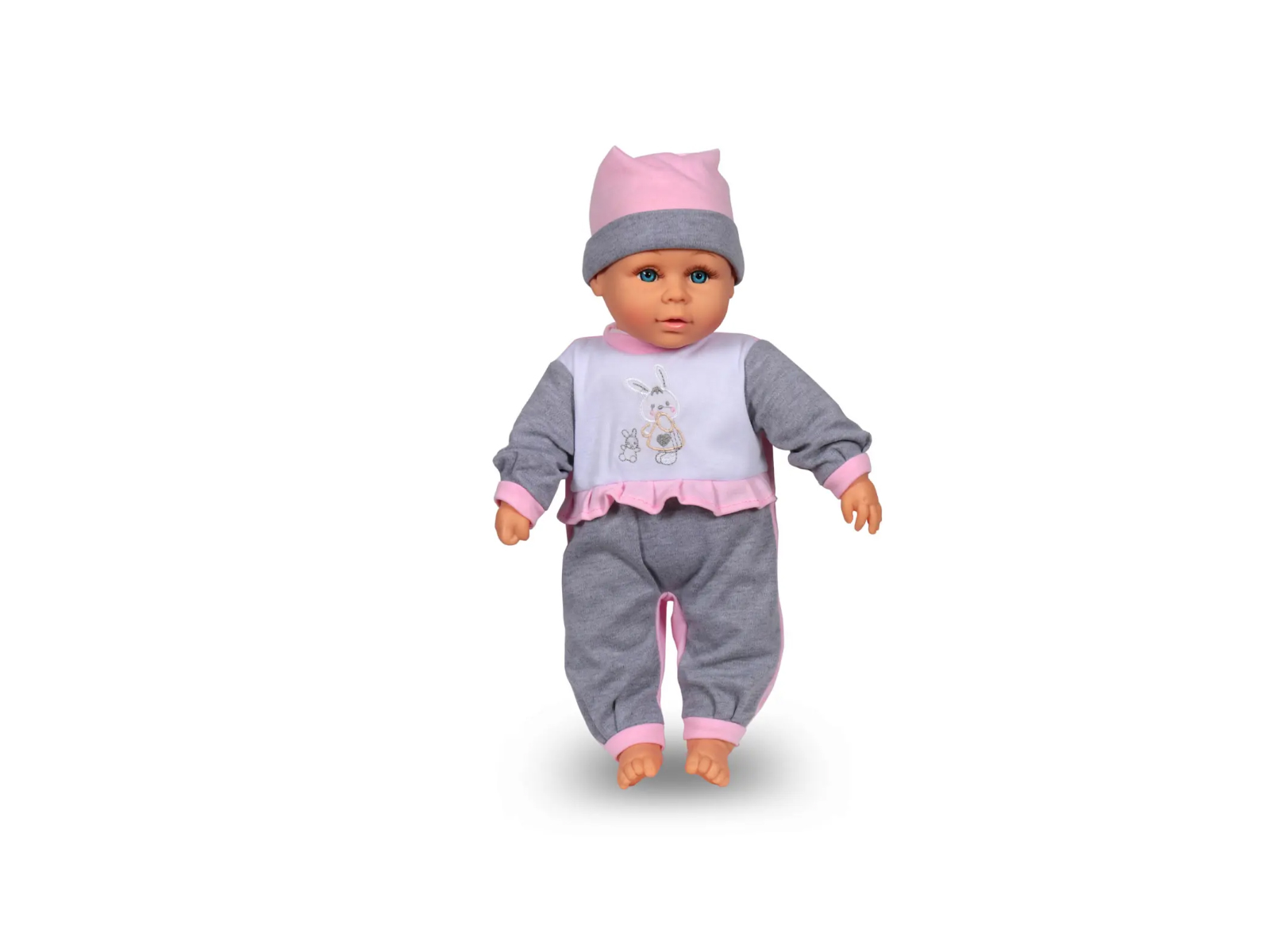 Пупс мягконабивной 40см 16В02 в сером костюме, 269948 *12 гб