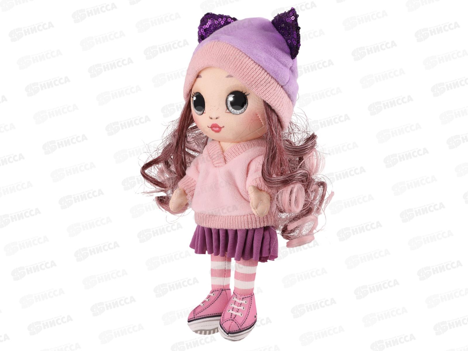Алисии нравятся кошки. У неё есть шапочка с милыми ушками, которые стали дополнительной интересной деталью сиреневого наряда и гармонируют с юбочкой в изящных складках. Волосы у Алисии розовые, сочетающие в себе разнообразные оттенки этого красивого цвета, который так идёт нашей куколке. Сам головной убор составляет со светлой кофтой тёплый костюм, а завершают гамму оттенков белые носочки в розовую полоску и такие же кеды. Но не только модная одежда и элегантность присущи Алисии из серии MAXITOYS PINK. Ручки и ножки мягкой игрушки крутятся на шарнирах, помогая достичь многообразия движений. И, конечно, кошачьи глаза: большие, округлые, сверкают на свету. Алисия с удовольствием станет подарком для людей, которым, как и ей, нравятся разные нежные цвета, стильные удобные костюмы с хорошо подходящими друг другу элементами и животные. Выглянув из красивой подарочной коробки, Алисия сразу увидит, в какое хорошее общество она попала, ей будет приятно играть и отдыхать вместе с Вами.