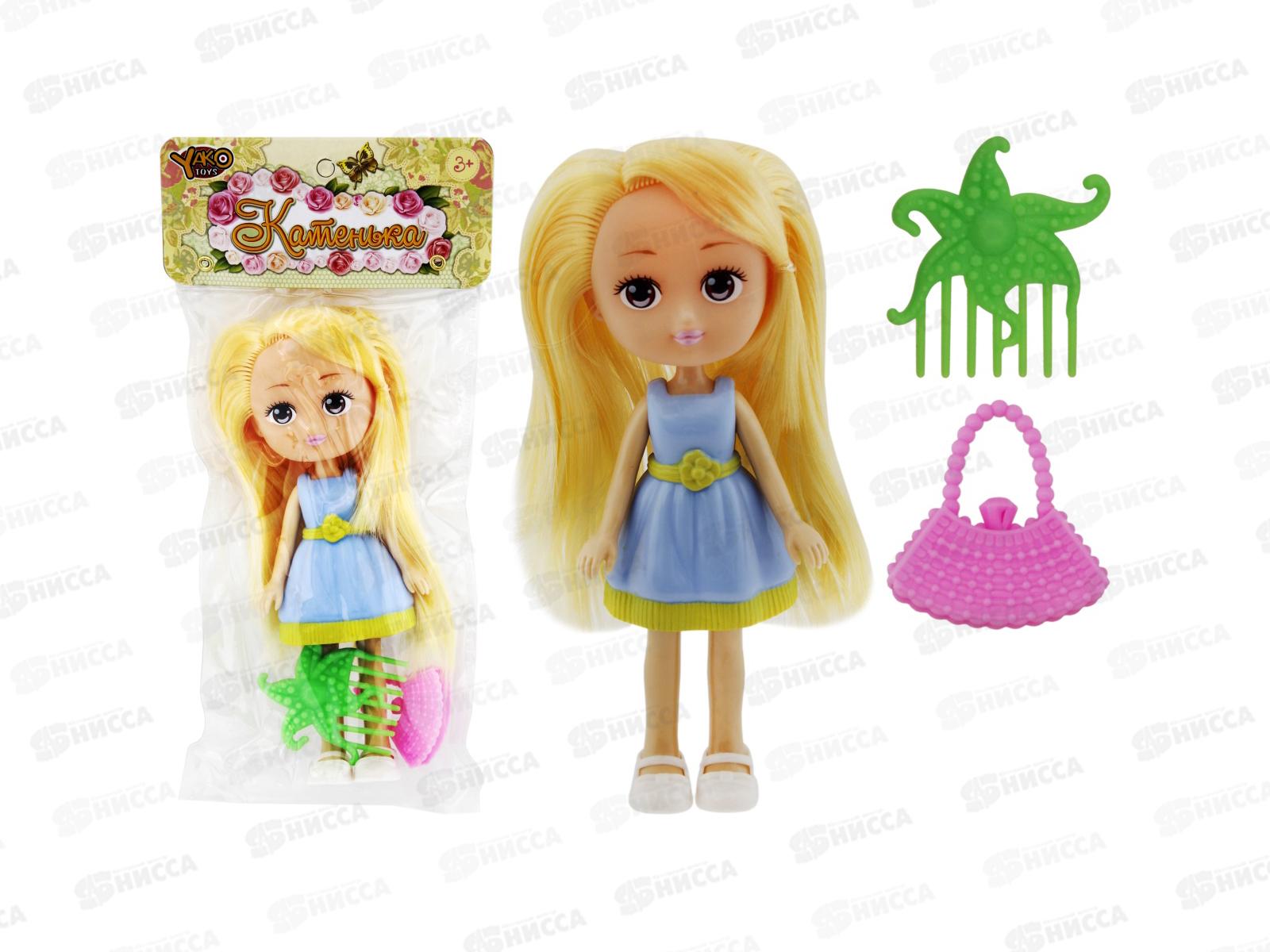 Кукла 16,5см Катенька в двухцветном платье, 4 вида, М9728-3 в пакете