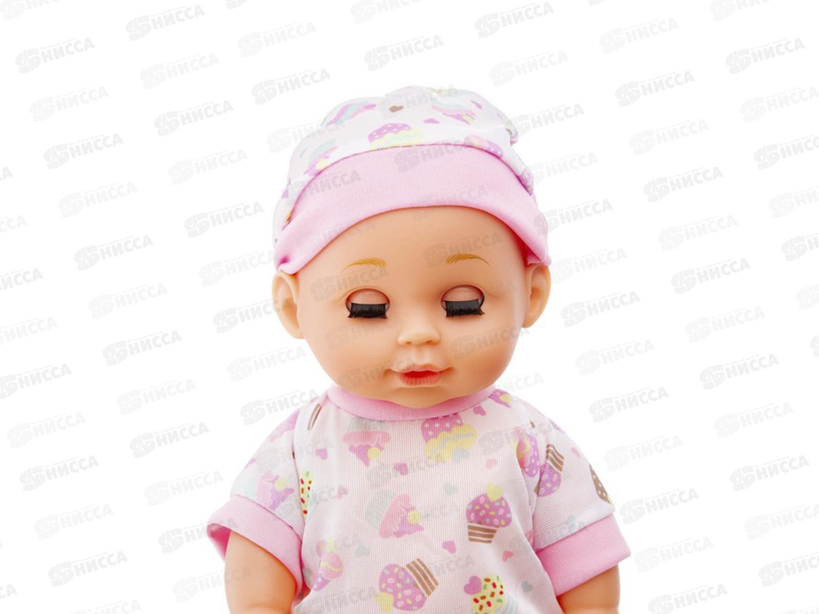 В наборе есть самые необходимые аксессуары для ухода за малышом – бутылочка для кормления, слюнявчик, тарелка с ложкой и вилкой, и целый набор игрушечных сладостей. Пупса можно купать, переодевать и укладывать спать.