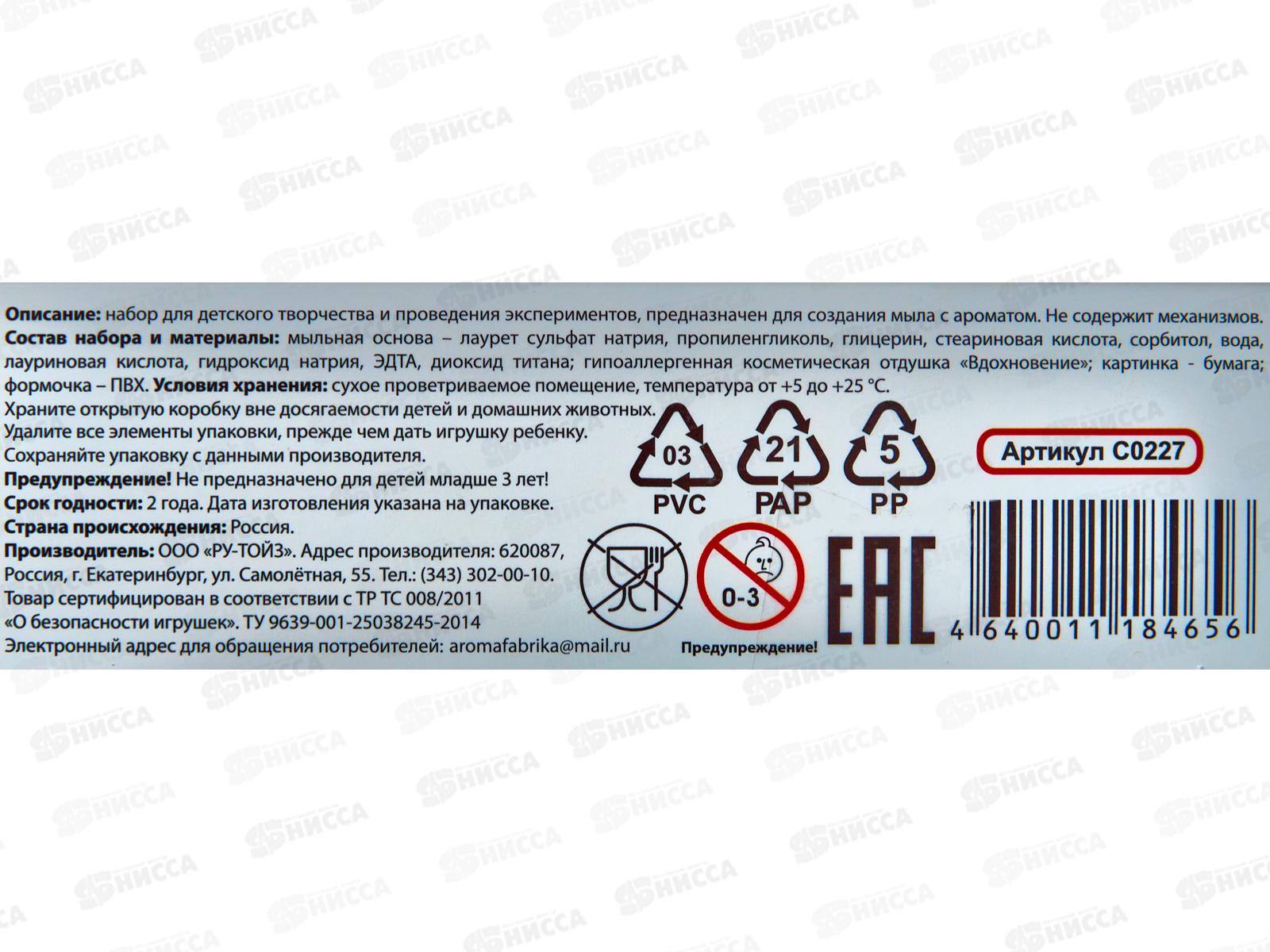 Комплектация: формочка, мыльная основа, водорастворимая картинка, отдушка, блестки, краси