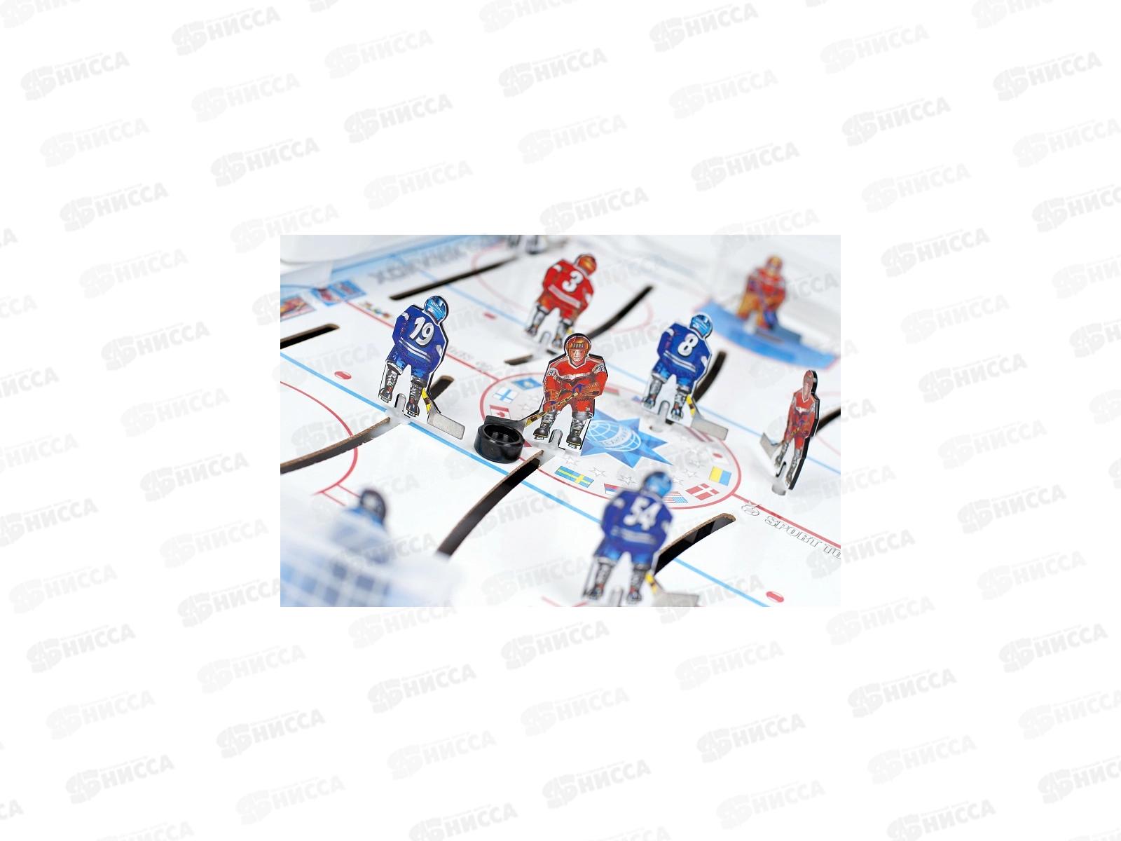 Комплектация: игровое поле, 14 хоккеистов, наклейки, 2 ворот, 2 шайбы