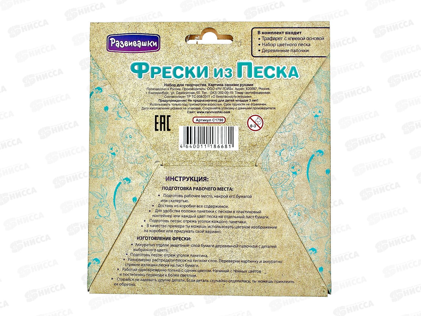 Комплектация: трафарет с клеевой основой, палочка, цветной песок