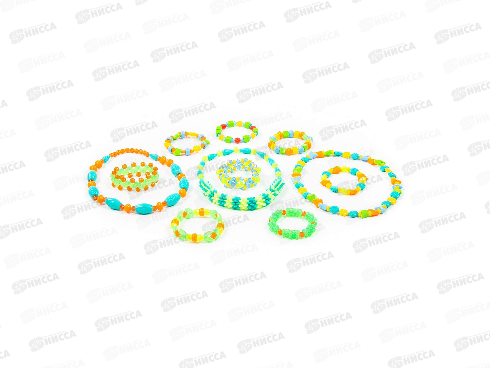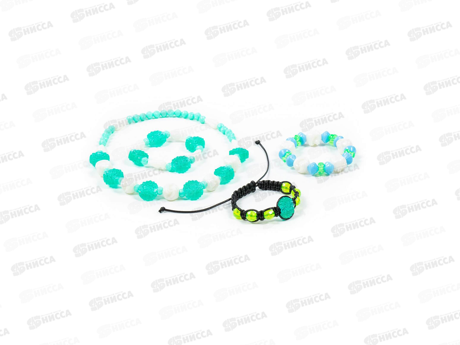 Комплектация: бусины, шнурок и резиночка для украшений, анкета