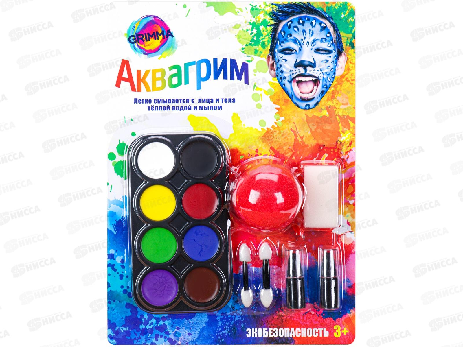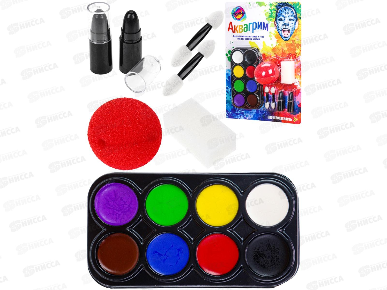 Набор аквагрима для детей (8цветов, нос клоуна, спонж, аппликатора 2штуки) КС-4628