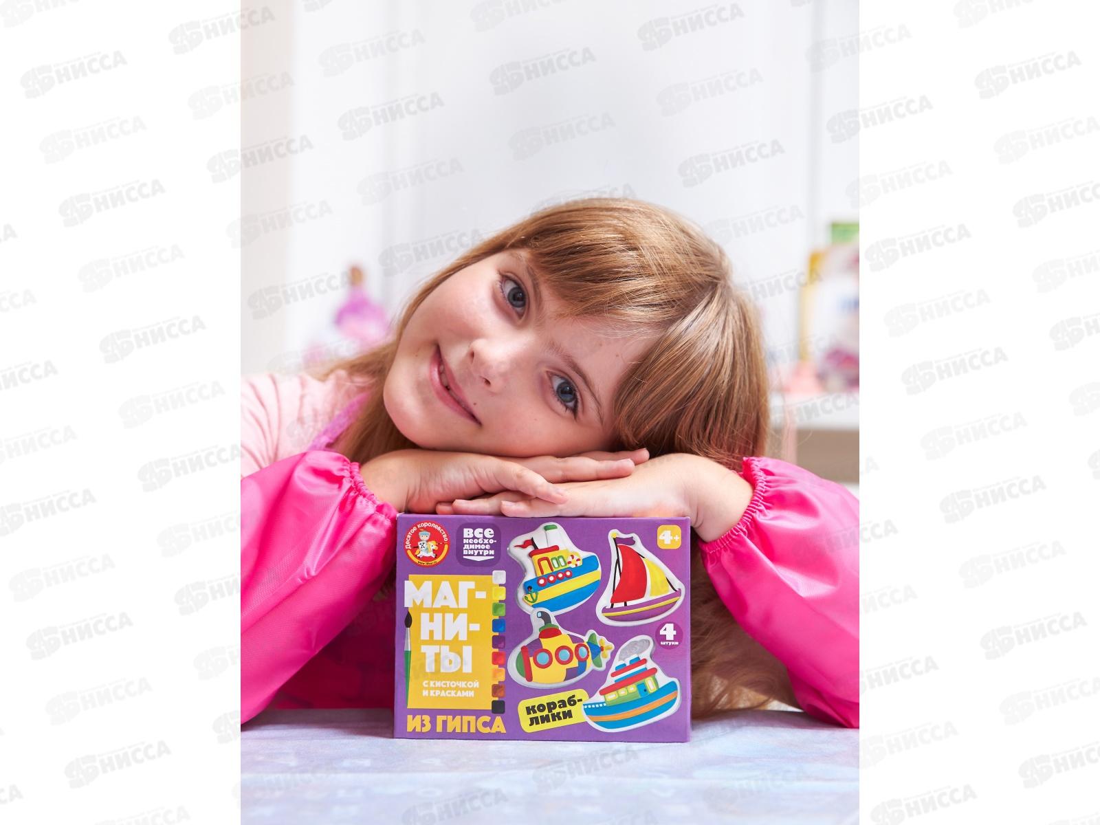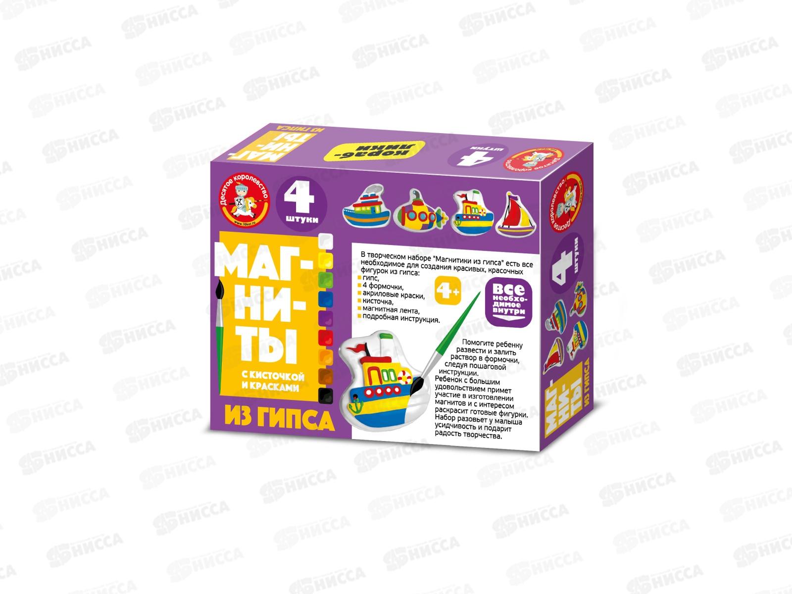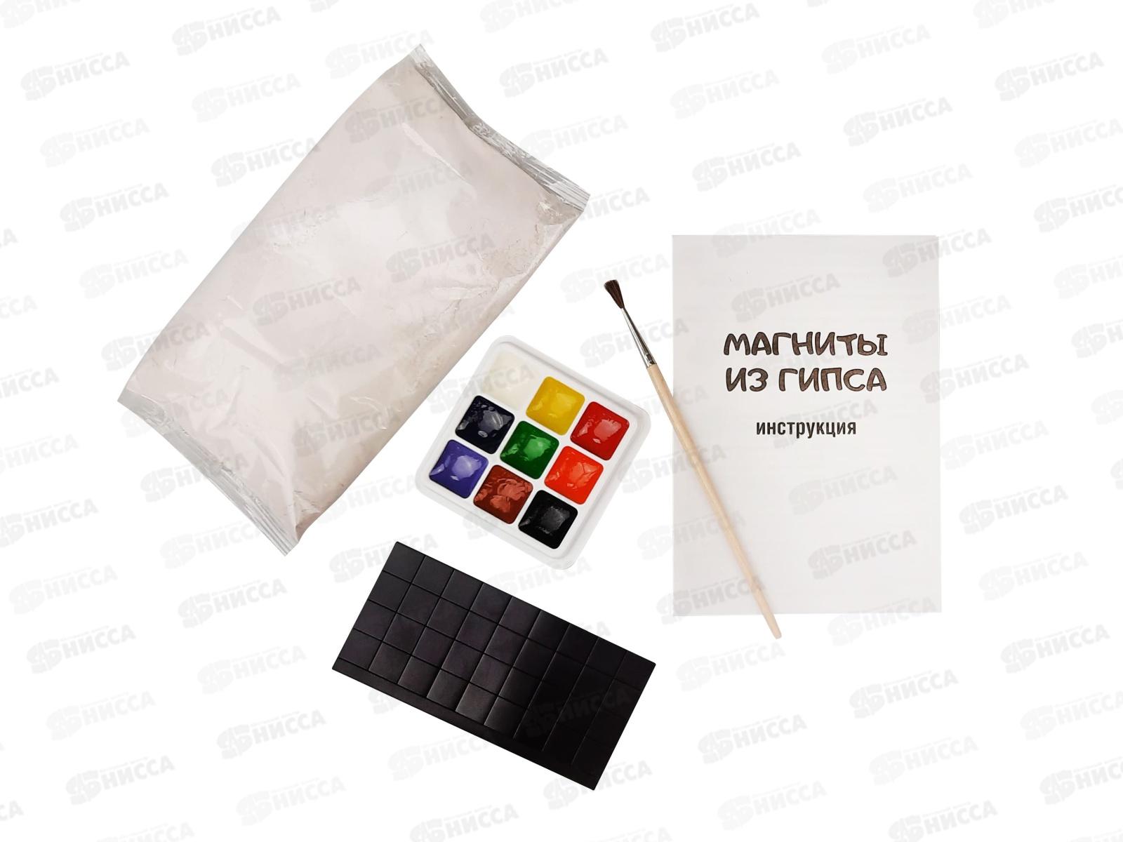 Комплектация: гипс 150 г, 4 формочки, 9 красок, кисточка, магнитная лента