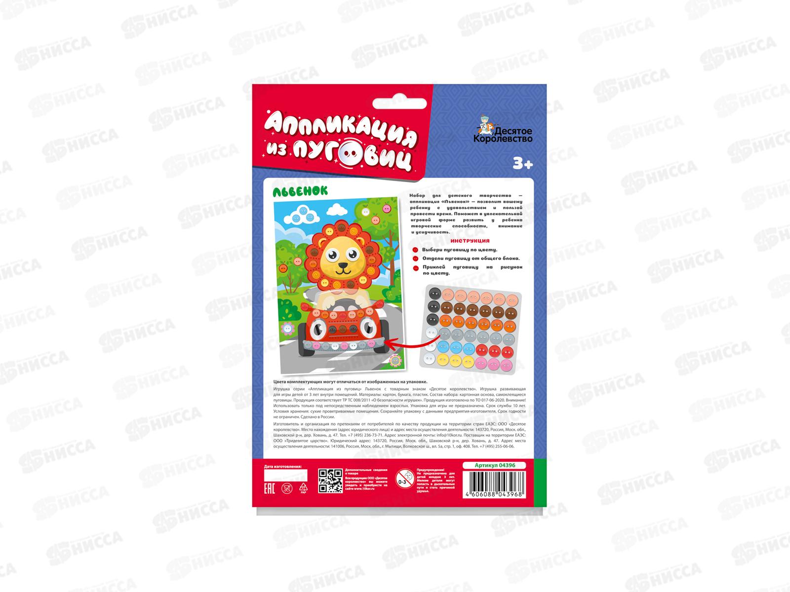 Набор для творчества Аппликация из пуговиц "Львенок" обязательно увлечет Вашего малыша яркими цветами и оригинальным исполнением! Данный набор является не только отличным развивающим пособием для Вашего малыша, но также может служить украшением интерьера или стать необычным подарком для друзей и близких.