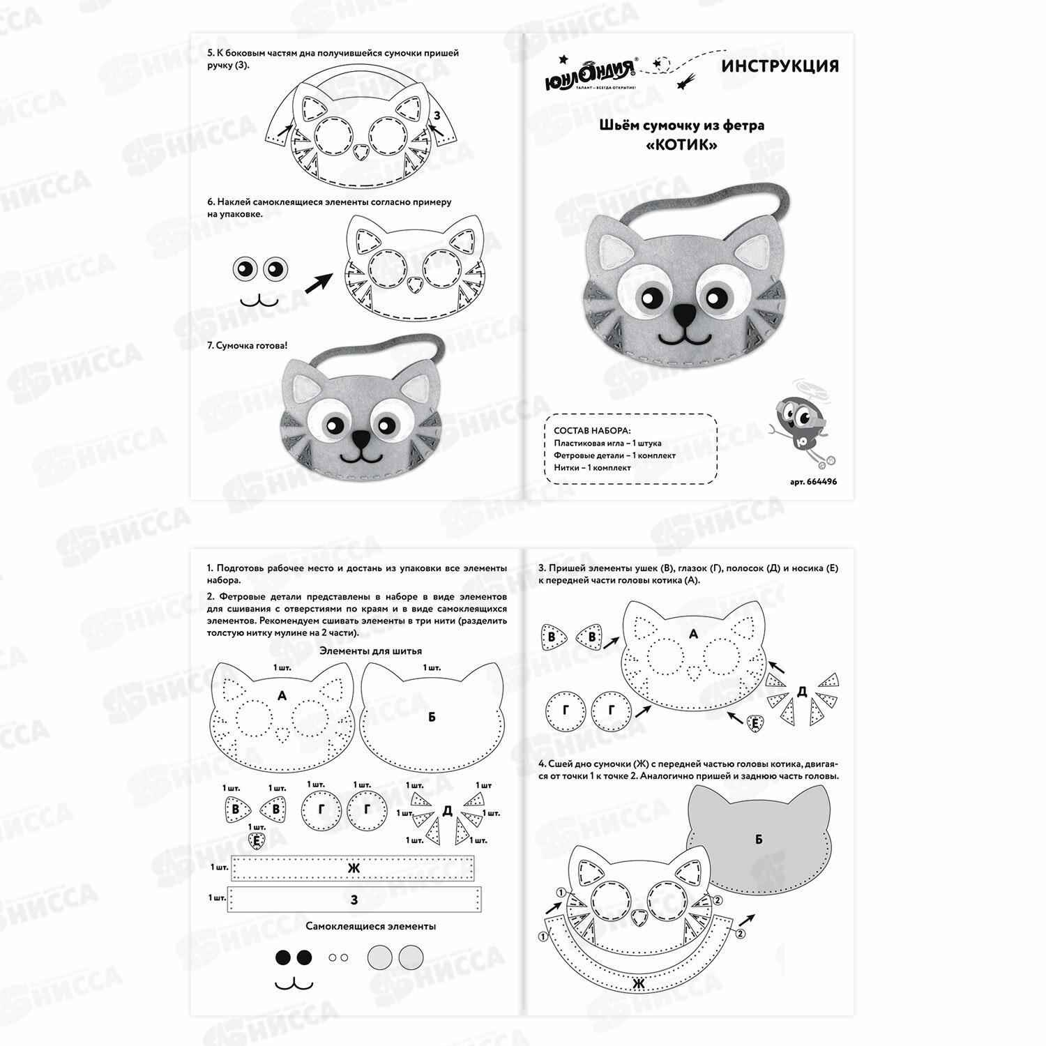 Набор для шитья сумочки из фетра Котик,Юнладия,664496
