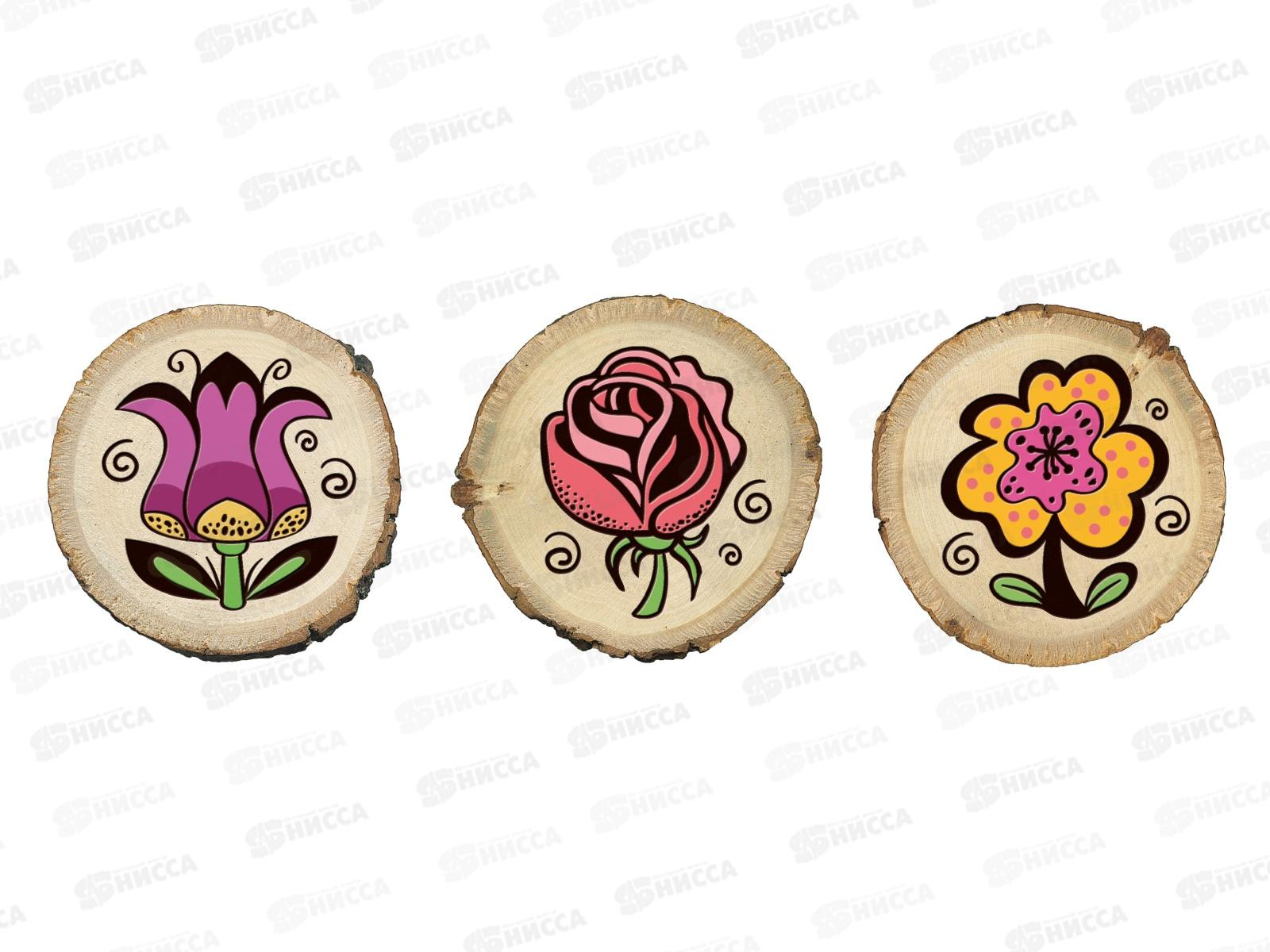 Выжигание на спилах "Цветы" (спил малый) 04805