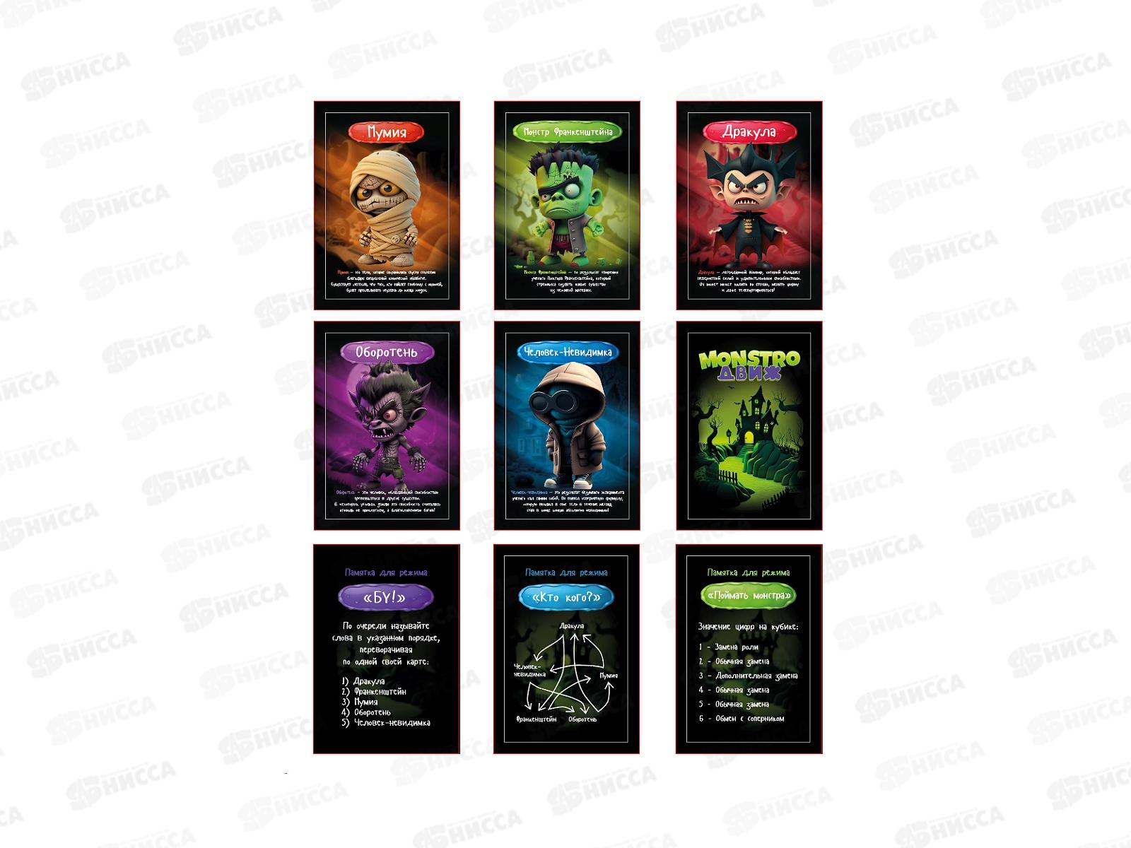 Настольная игра для большой компании "MONSTRO ДВИЖ" - это 7 веселых игр в одной коробке! Собирайся с друзьями и веселись вместе с известными персонажами: Человеком-невидимкой, Оборотнем, Мумией, Монстром Франкенштейна, Дракулой. Скучно точно не будет!