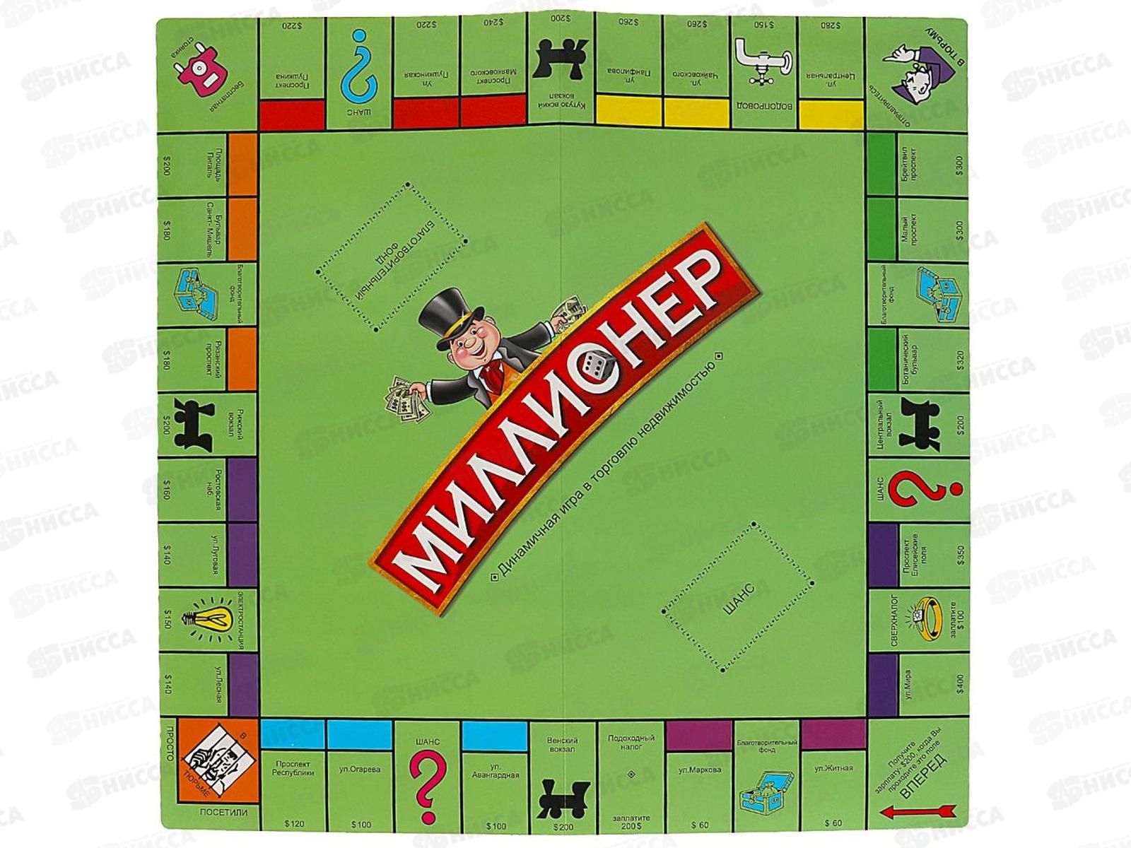 Комплектация: игровое поле, 10 жетонов, 60 карточек, 82 дома, 12 отелей, 2 кубика