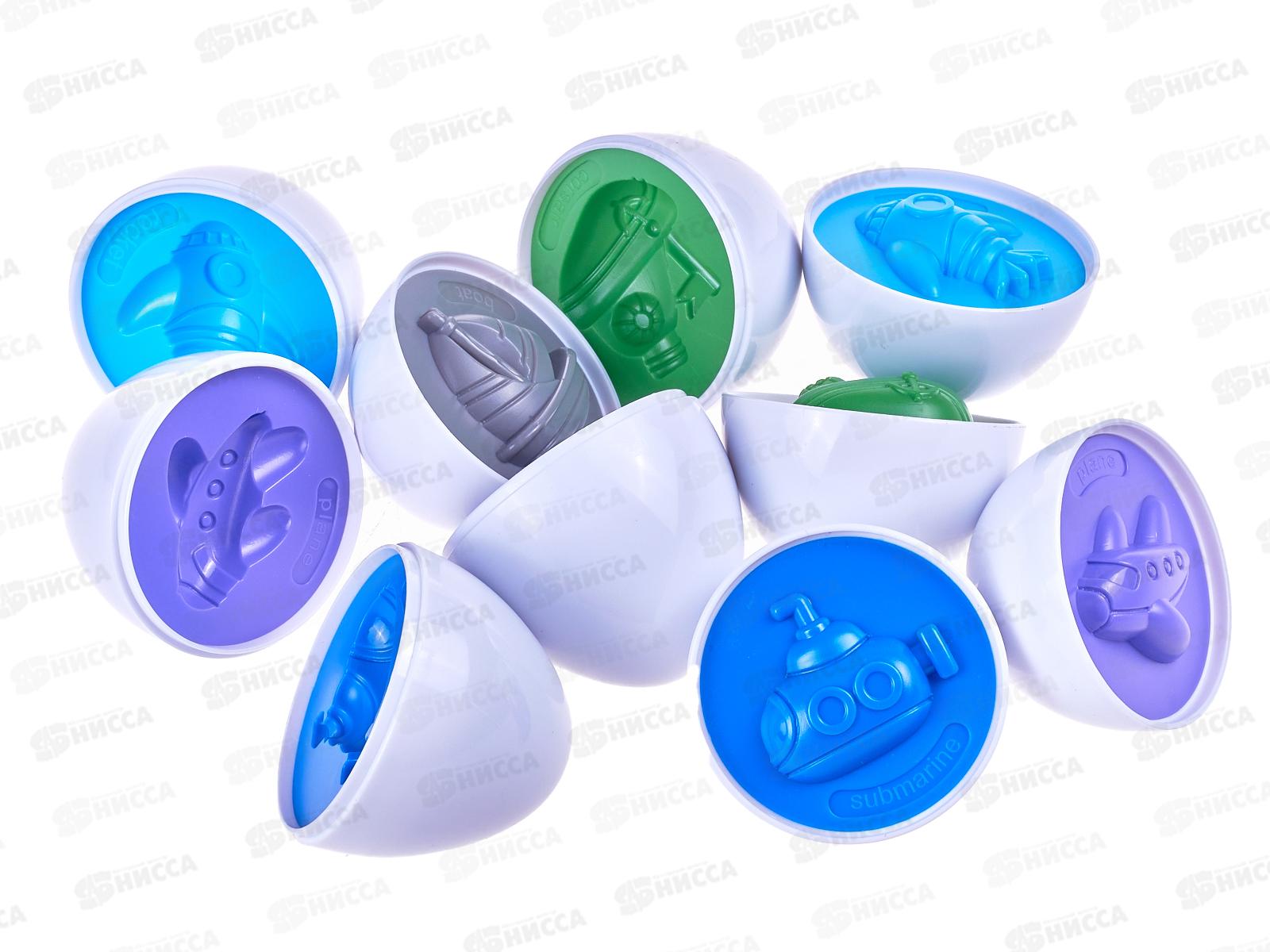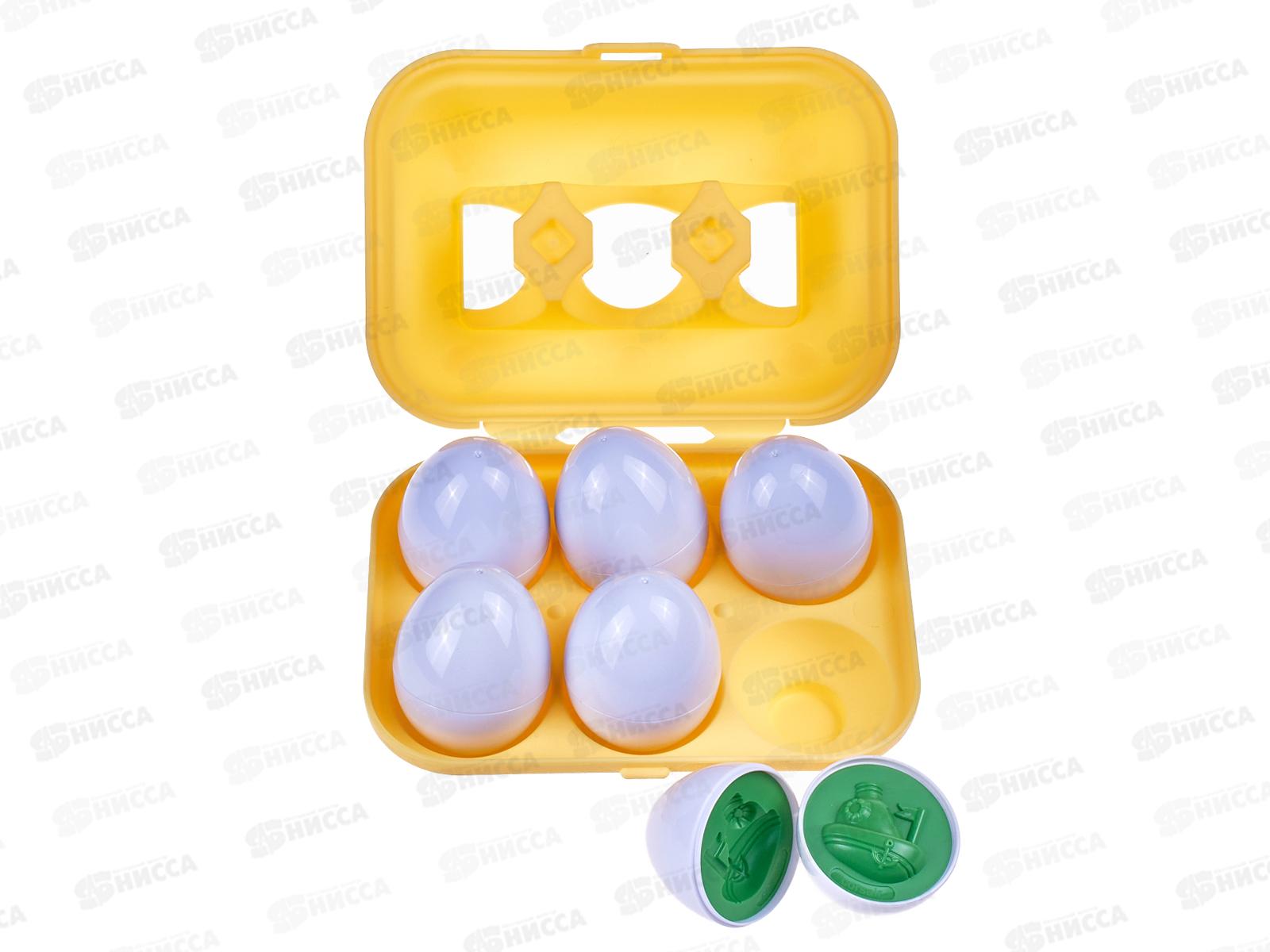 Яйца по форме, цвету, размеру и лотку-упаковке полностью имитируют настоящие куриные яйца. Каждое яйцо состоит из двух частей, внутри которого размещена фигурка в виде транспорта. Цель игры в том, чтобы сопоставить половинки с одинаковой фигурой и цветом. Игрушка-сортер в виде куриных яиц поможет развить у малыша цветовосприятие, внимание, мелкую моторику рук и логику.