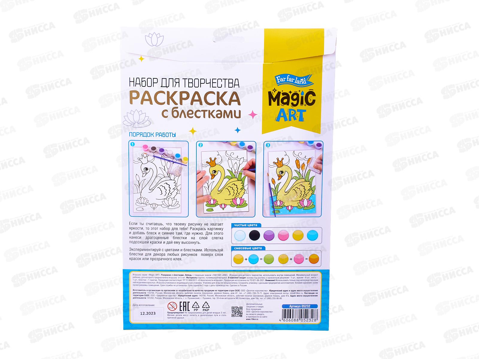 Раскраска с блестками "Лебедь" - это набор для творчества, с помощью которого можно создать симпатичную открытку и подарить ее друзьям или близким. Используйте блестки для декора любых рисунков. Для этого нанесите блестки тонким слоем на еще не высохшую краску или прозрачный клей, и рисунок засверкает. Раскрашивание тренирует мелкую моторику, развивает вкус и фантазию, а также позволяет проявить творческие способности ребенка.