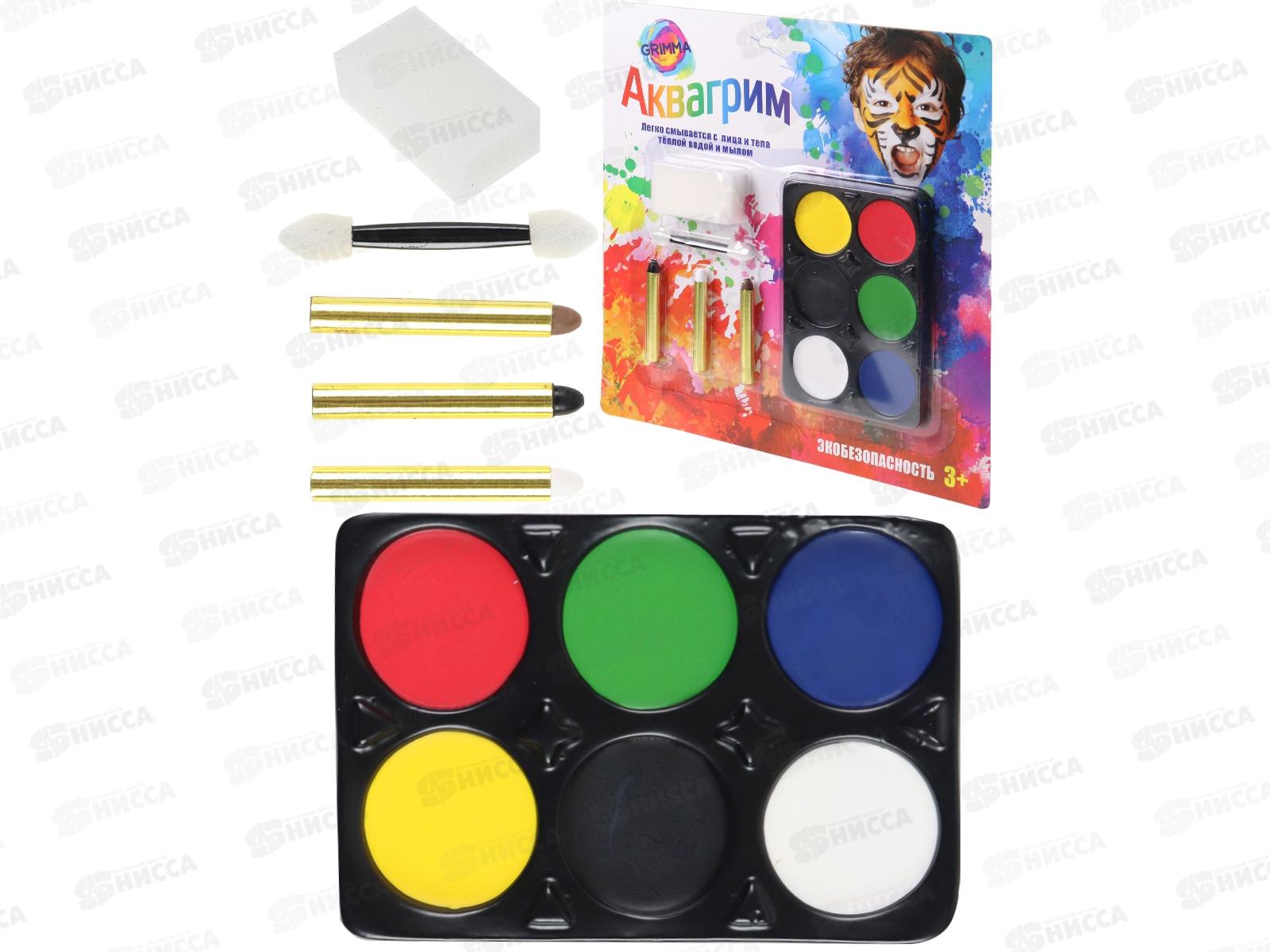 Набор аквагрима поможет украсить любой детский праздник или театральную постановку! С ним будет легко фантазировать и украшать лица рисунками, узорами, создавать любой образ. Краски легко наносятся и смываются, безопасны для детской кожи. В комплекте: 6 цветов (красный, зелёный, ярко-синий, жёлтый, чёрный, белый), 3 карандаша (чёрный, белый, коричневый), 1 спонж и 1 аппликатор.