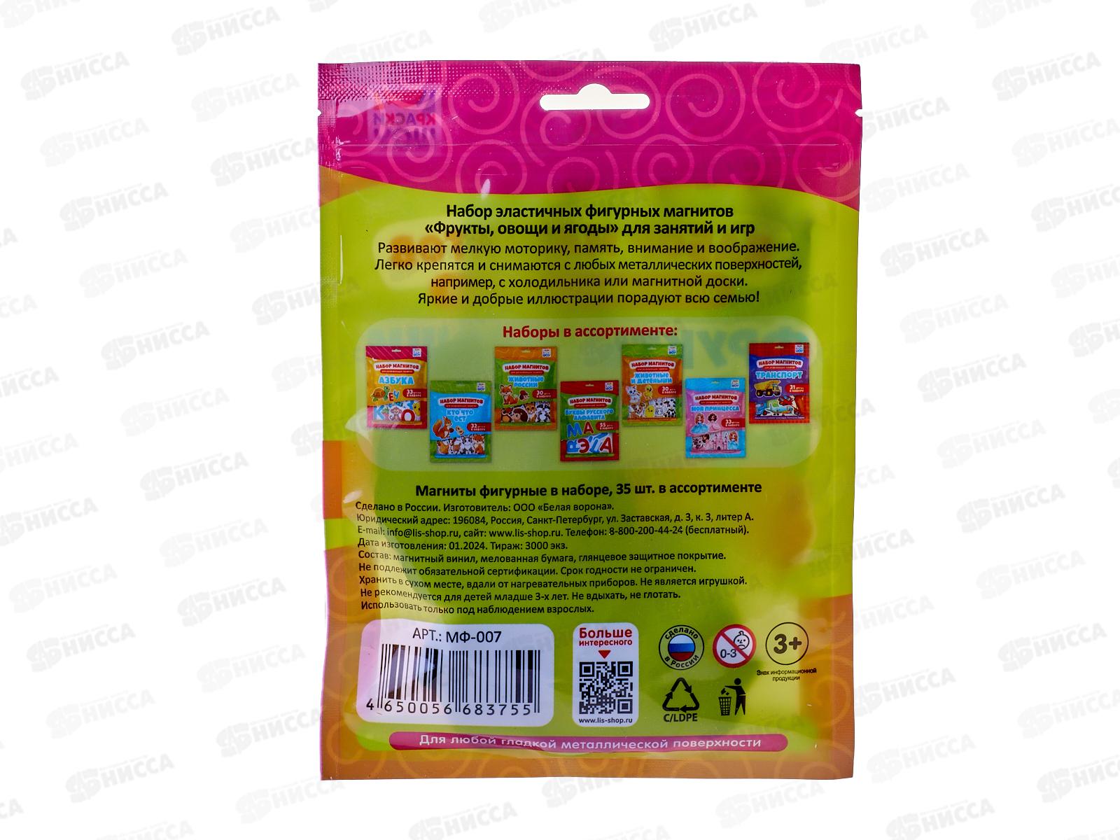 Набор магнитов для развивающих занятий "Овощи, фрукты, ягоды" 35шт, МФ-007