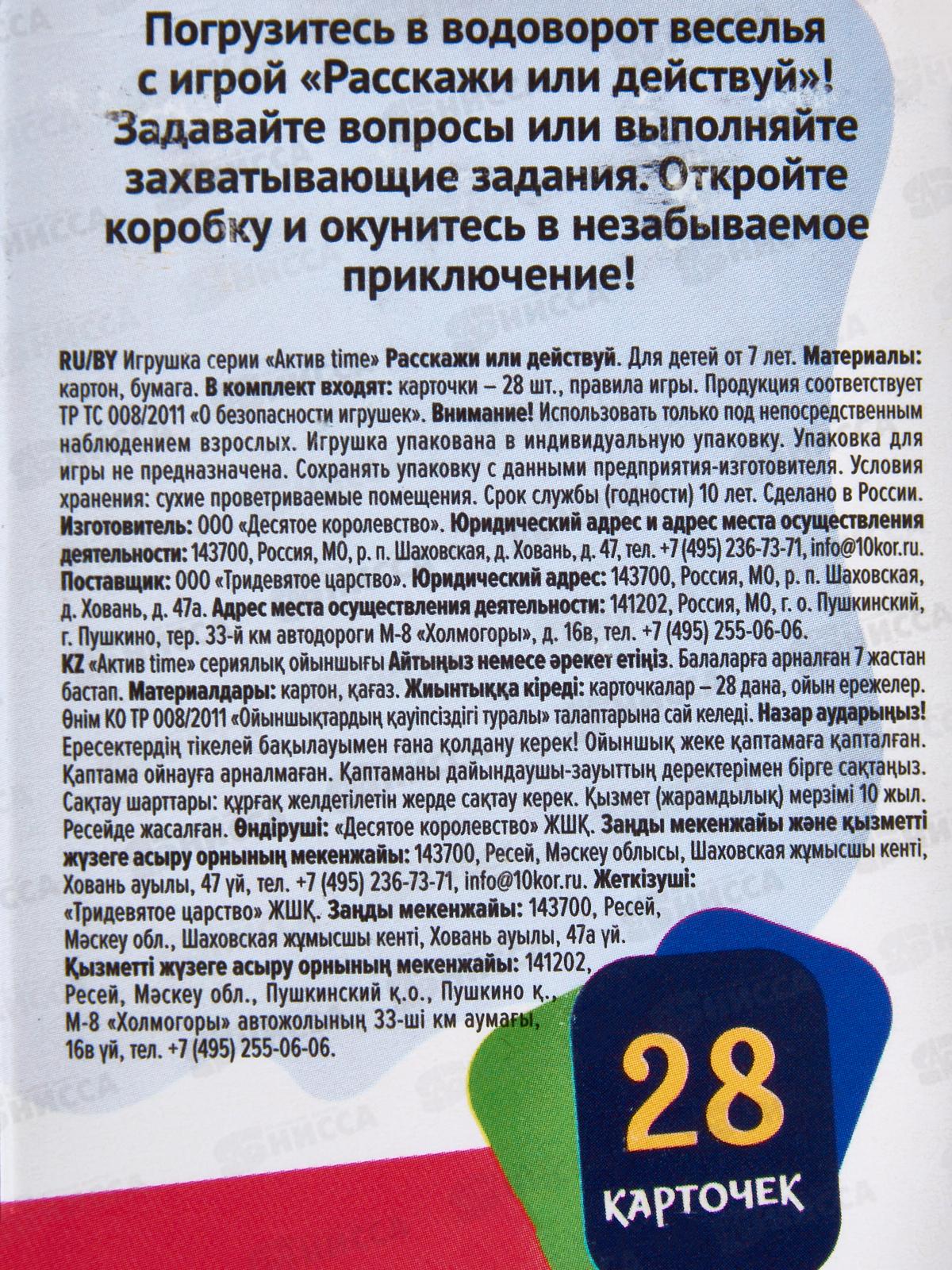 Игра настольная "Расскажи или Действуй" 05241 Актив time