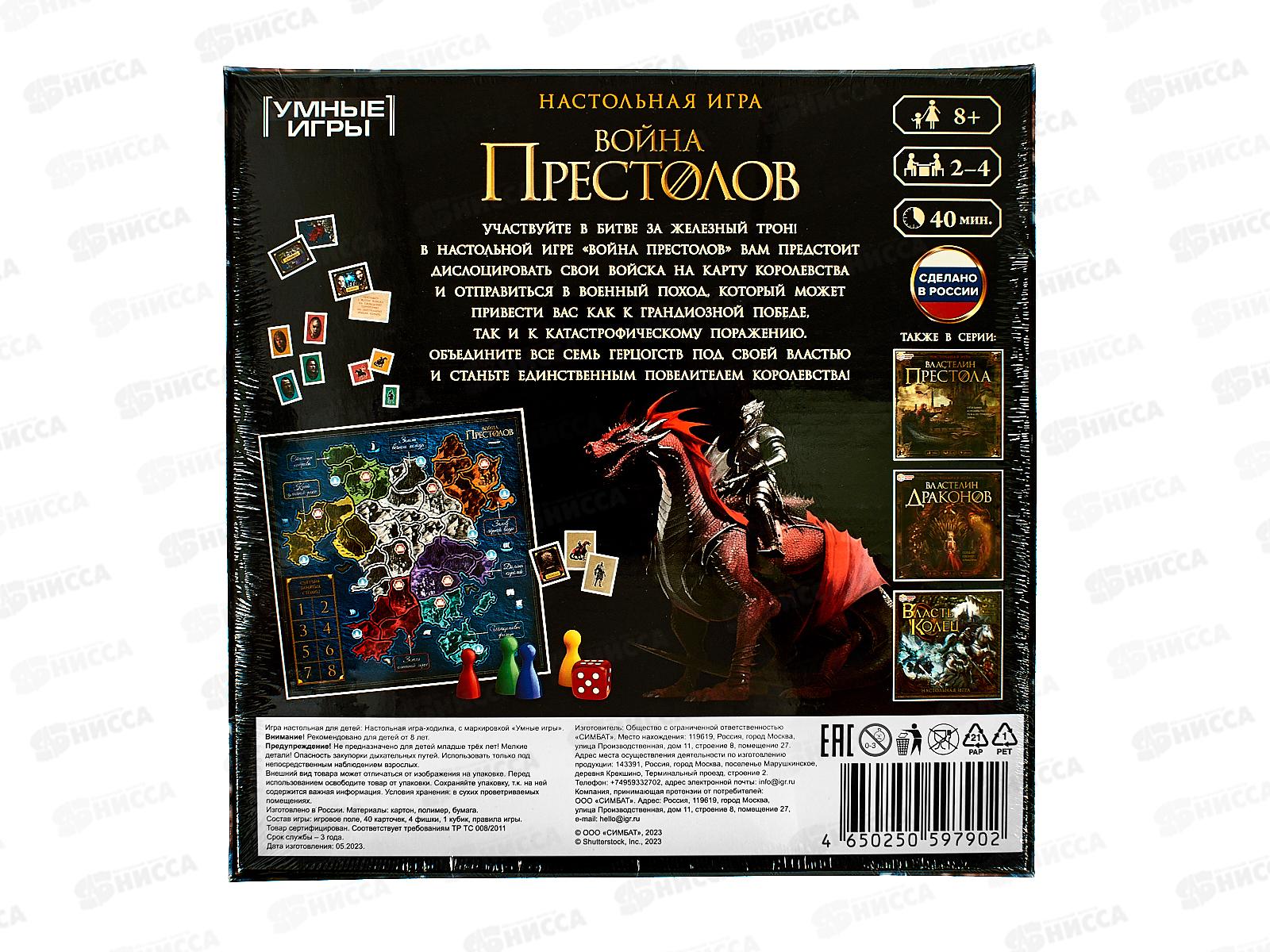 Настольная игра-квадрат. Война Престолов, 40 карточек. 97902 *10