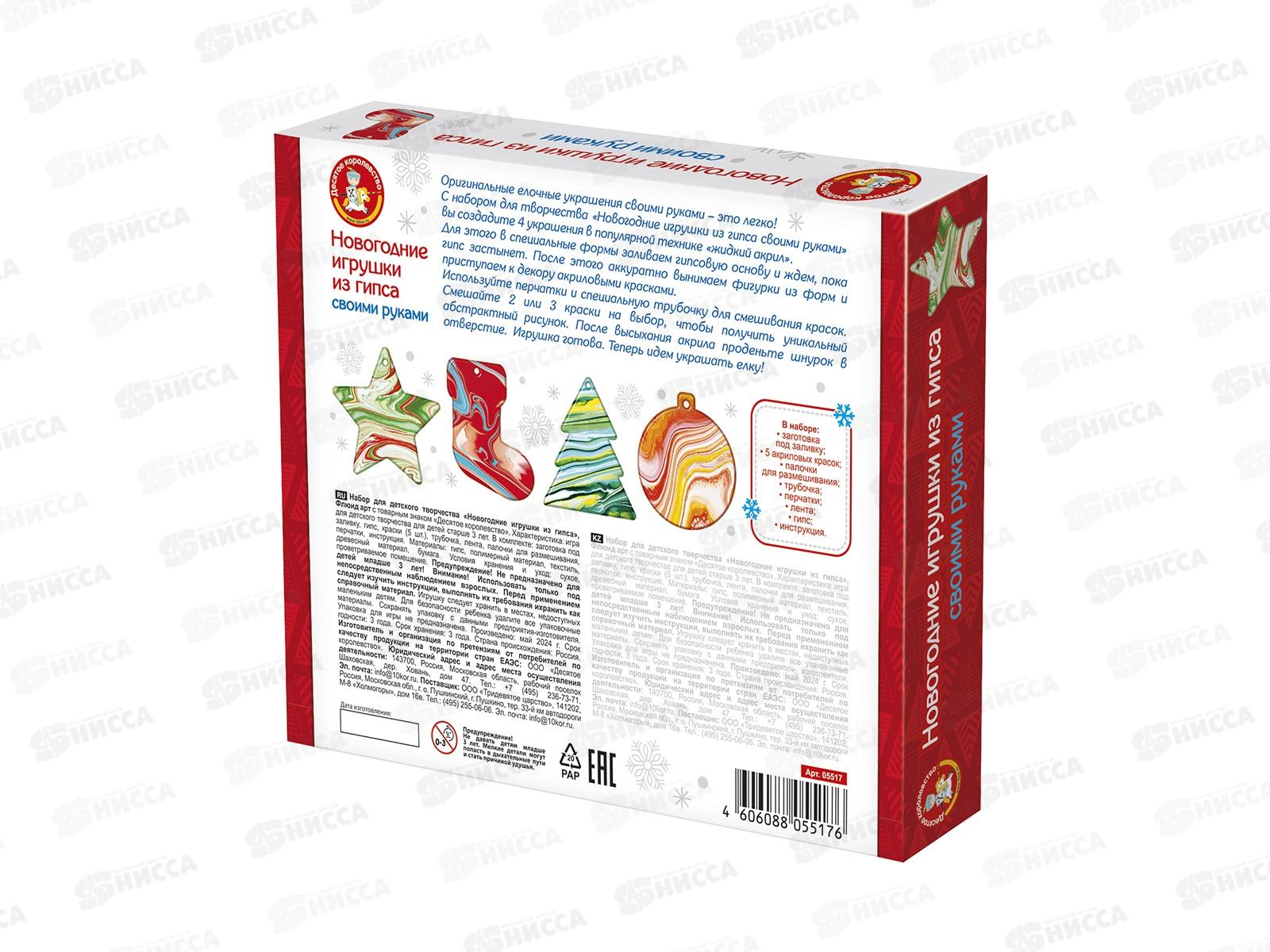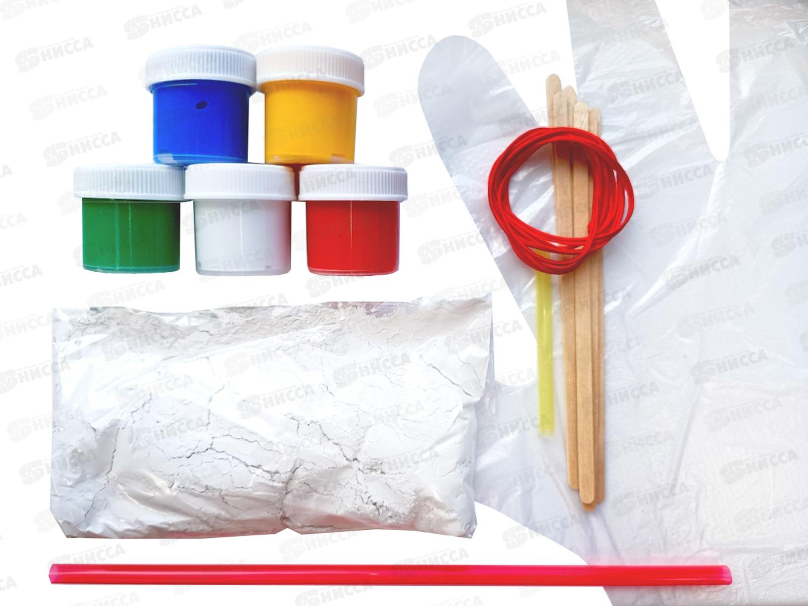 Комплектация: гипс, 4 формочки, 5 акриловых красок, палочки, трубочки, перчатки, лента