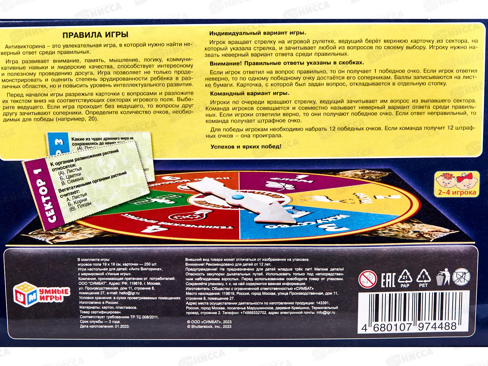 Викторина 74488 "Умные игры" 500 вопросов Антивикторина в коробке *20