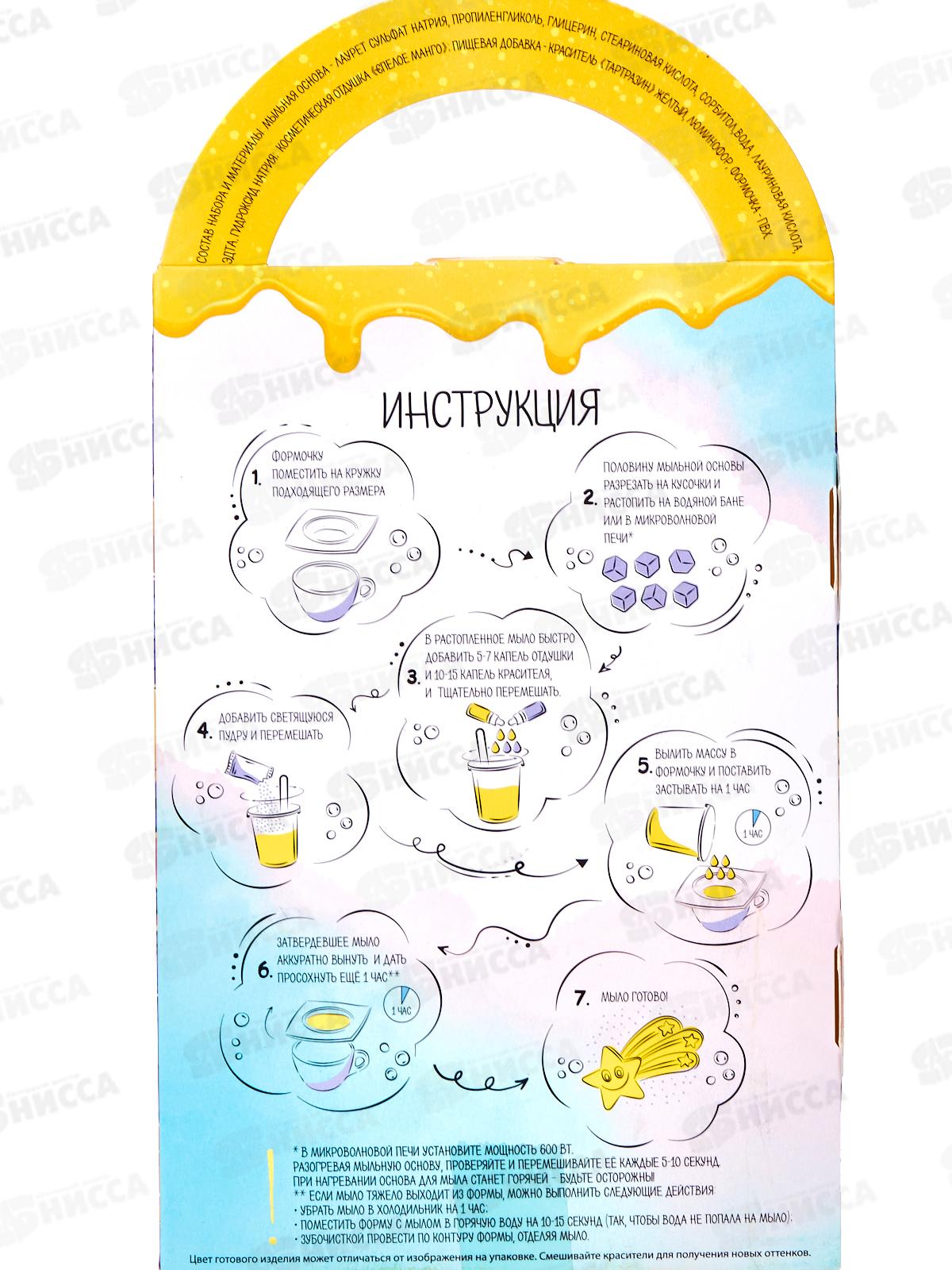 Комплектация: мыльная основа, отдушка, краситель, формочка, светящаяся пудра