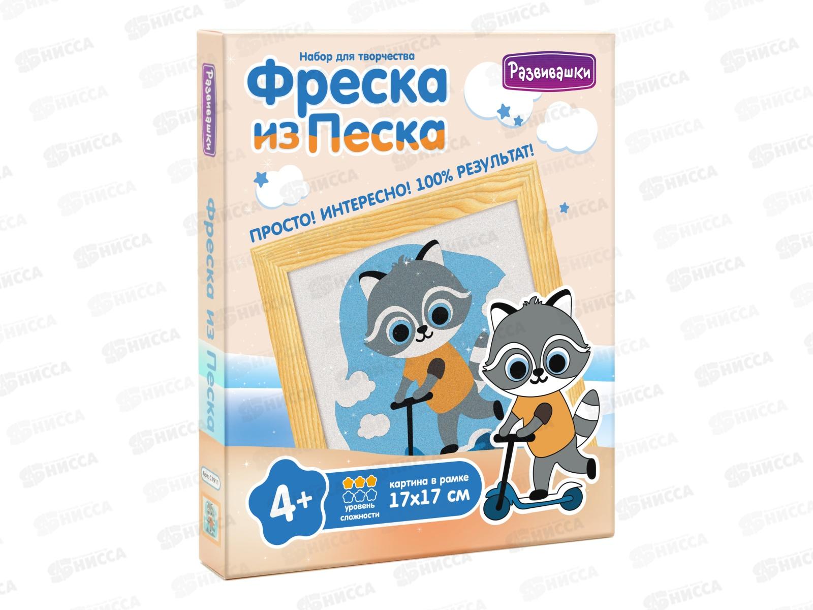Фреска из цветного песка "Енот на самокате" С1911 *26