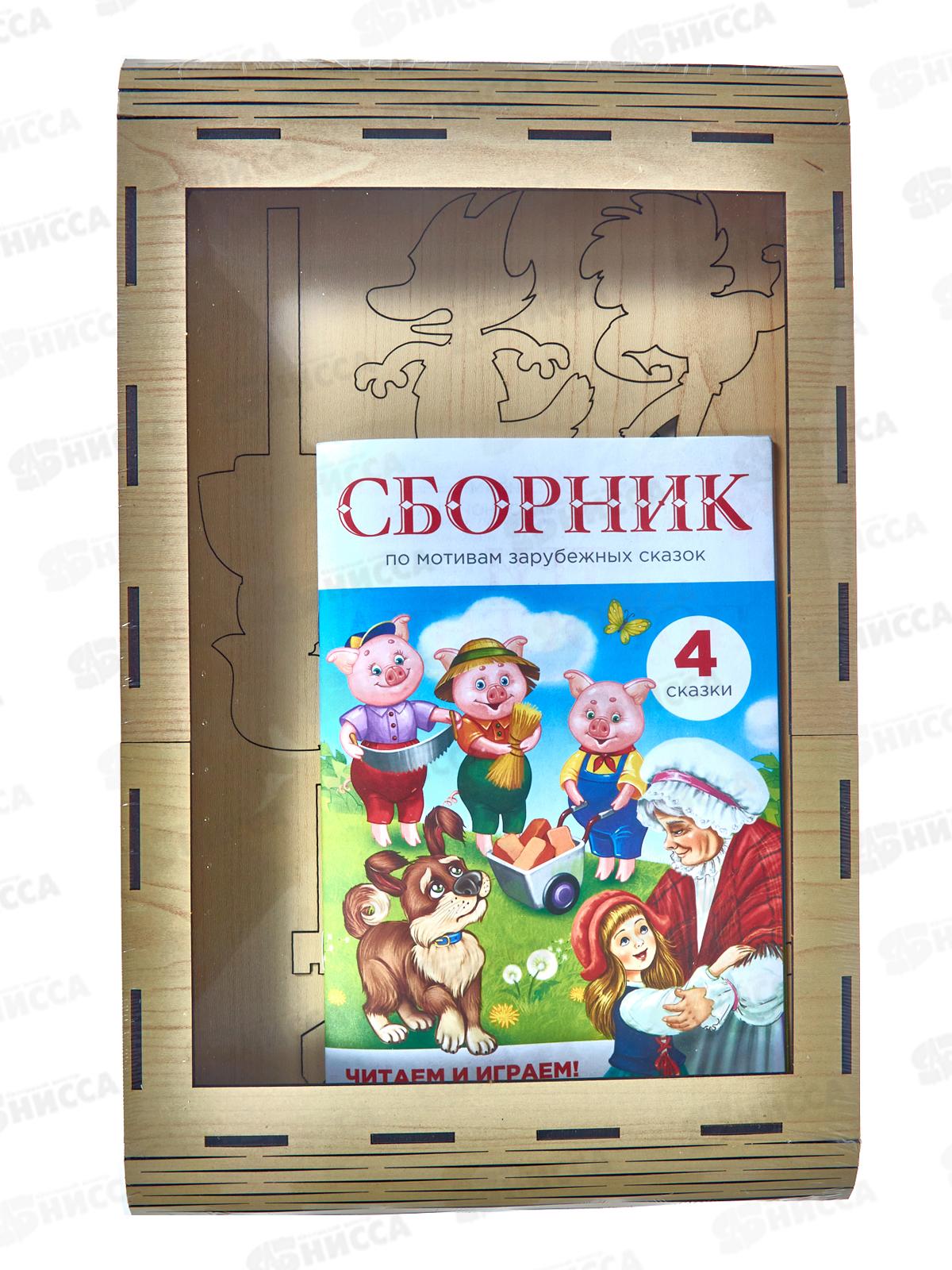 Комплектация: 20 деревянных деталей, книжка с 4 сказками
