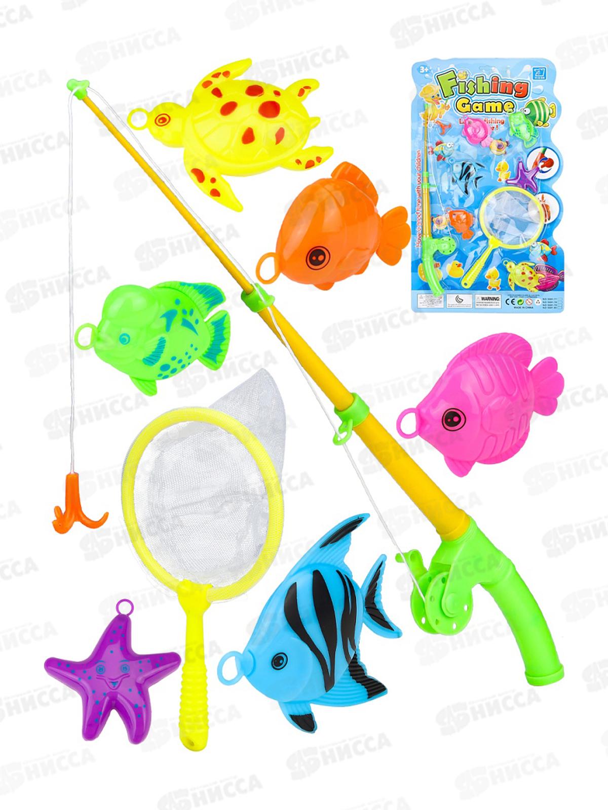 Рыбалка "Веселый рыбак-3" 6 рыбок, 1 удочка, сачок, Y1348014 блист.