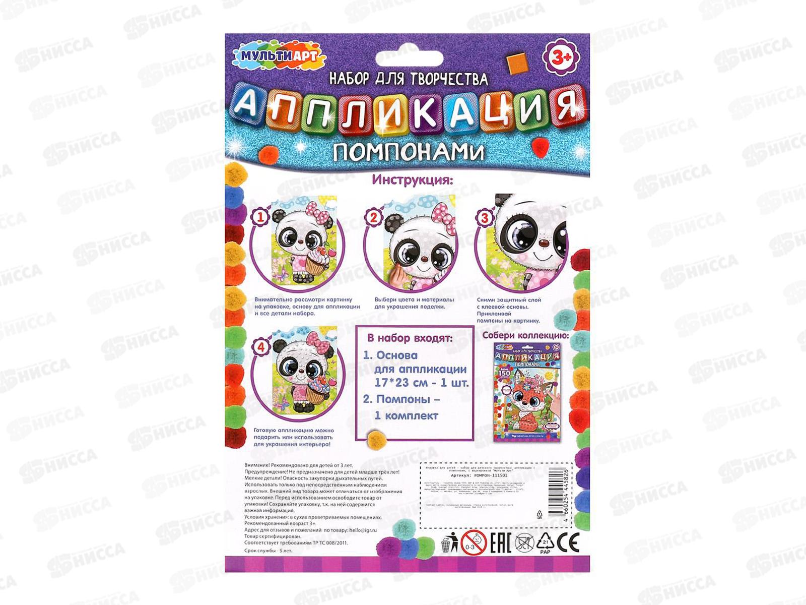 Аппликация из помпонов Панда POMPON-111501 (17х23см)