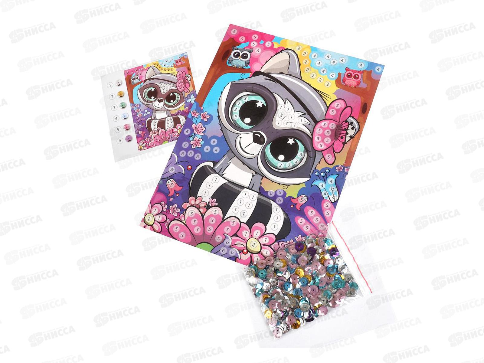 Аппликация из пайеток 17*23см Енот, SEQPACK-112283
