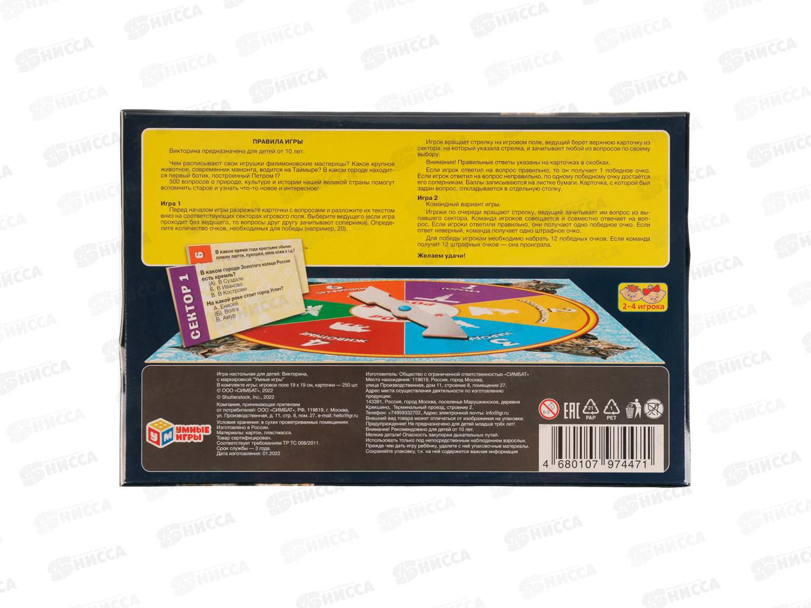 Викторина 74471 "Умные игры" 500 вопросов Россия в/к *20