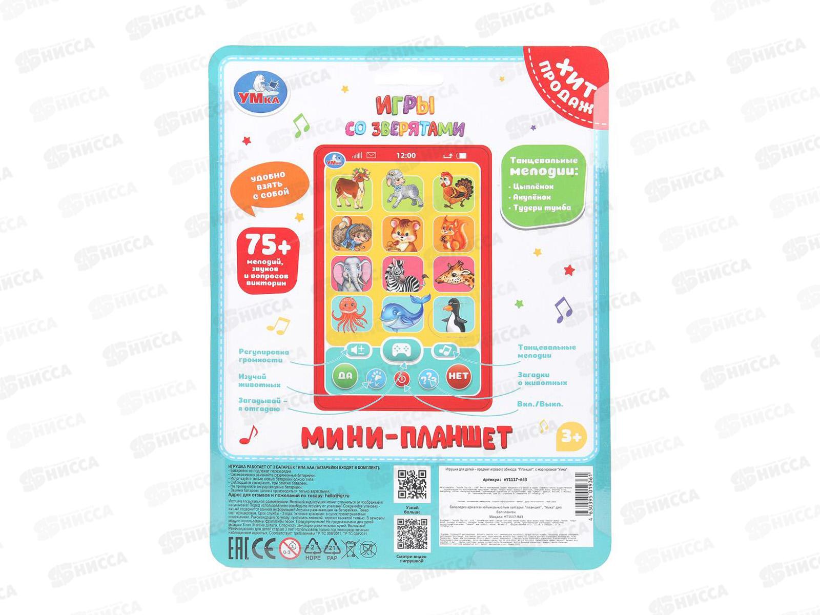 Планшет-мини "Умка" обуч. НТ1117-R43, 75+ мелодий, звуков и вопросов викторин