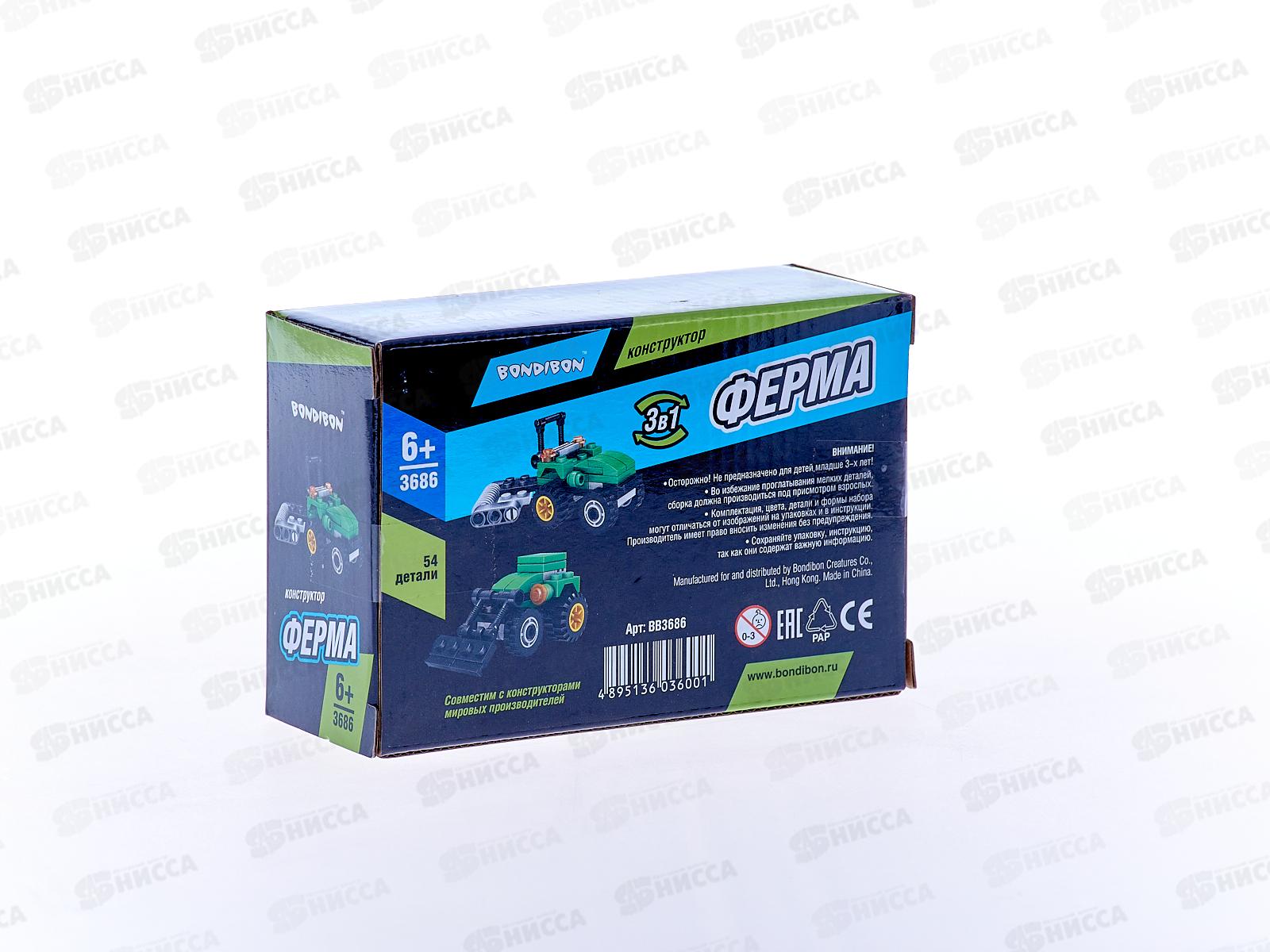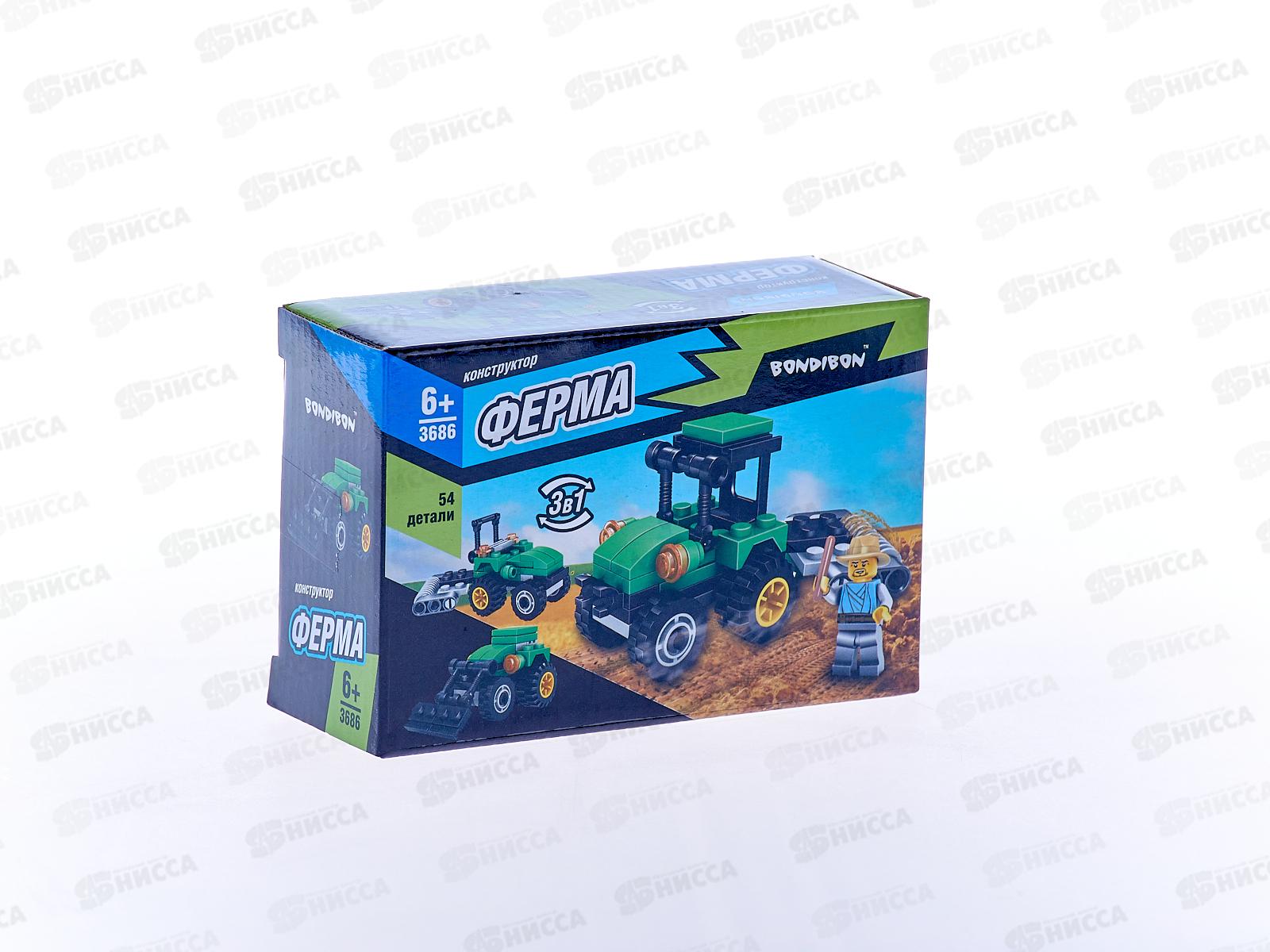 Конструктор Bondibon Ферма, Трактор 54дет ВВ3686