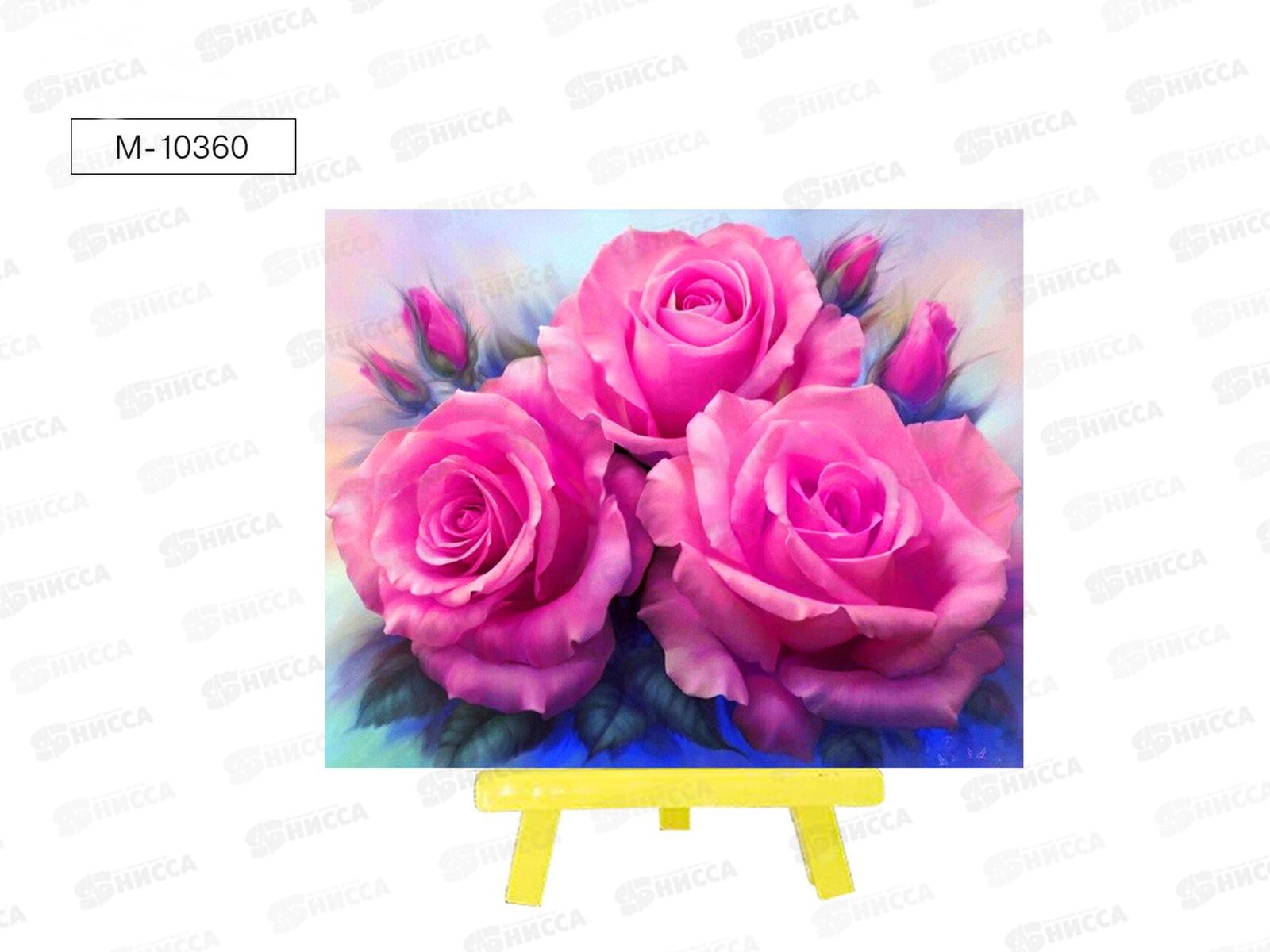 Алмазная мозаика "Розы" с мольбертом. В наборе: холст, мольберт, пластиковая ручка, клей, лоток.